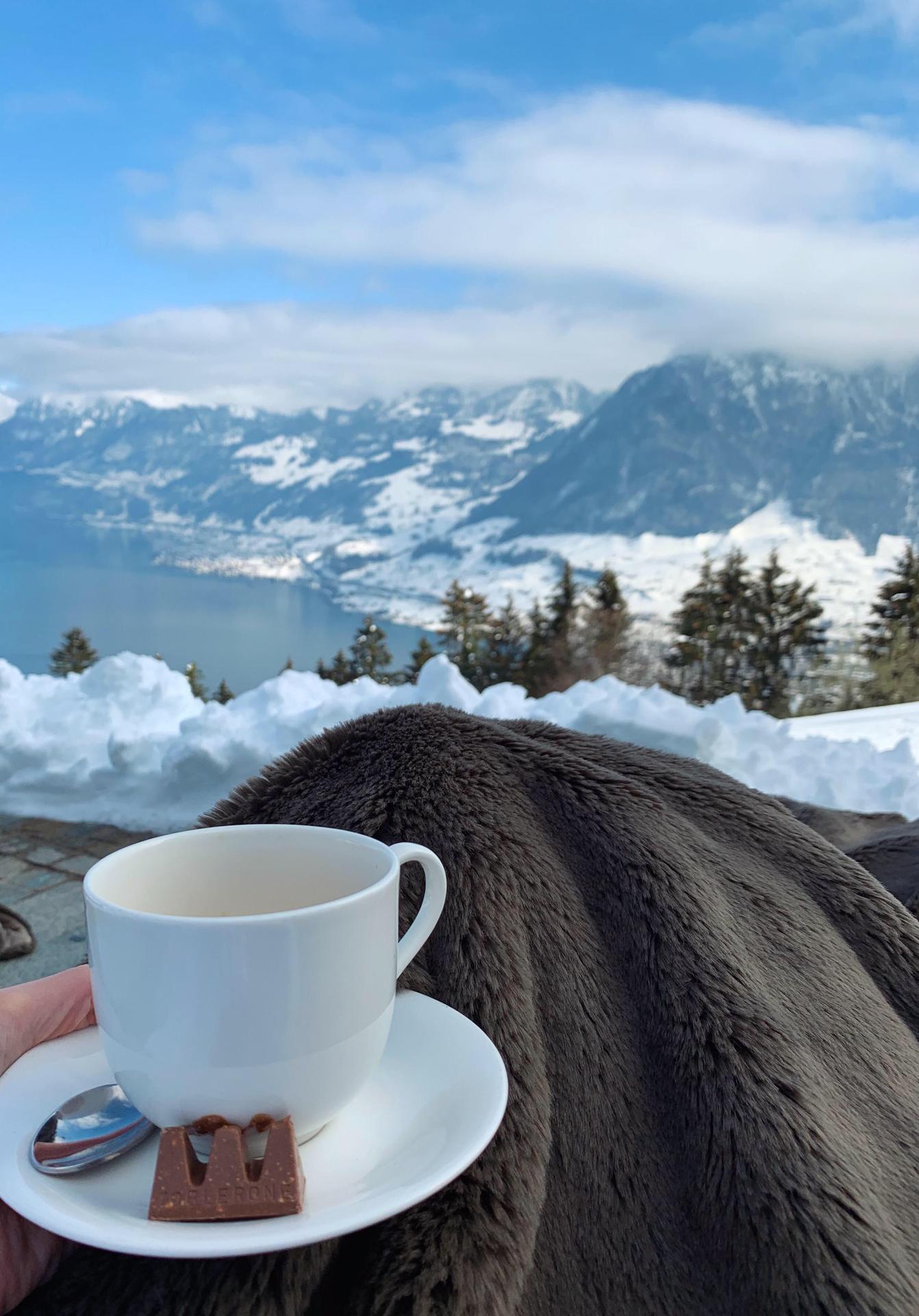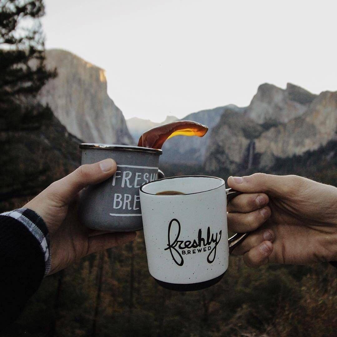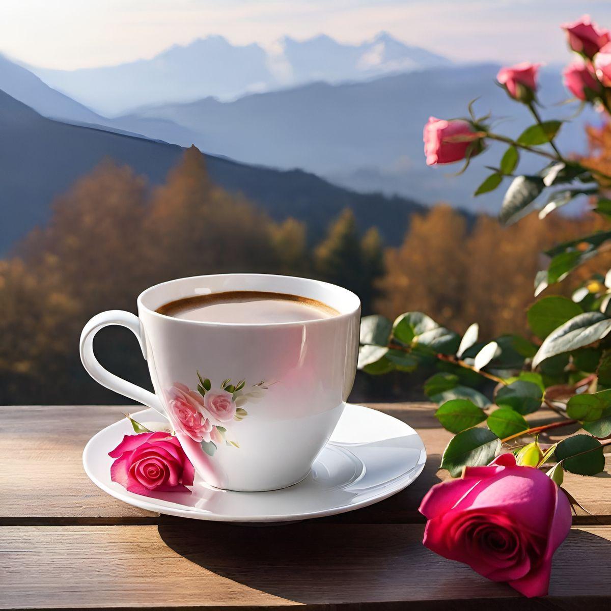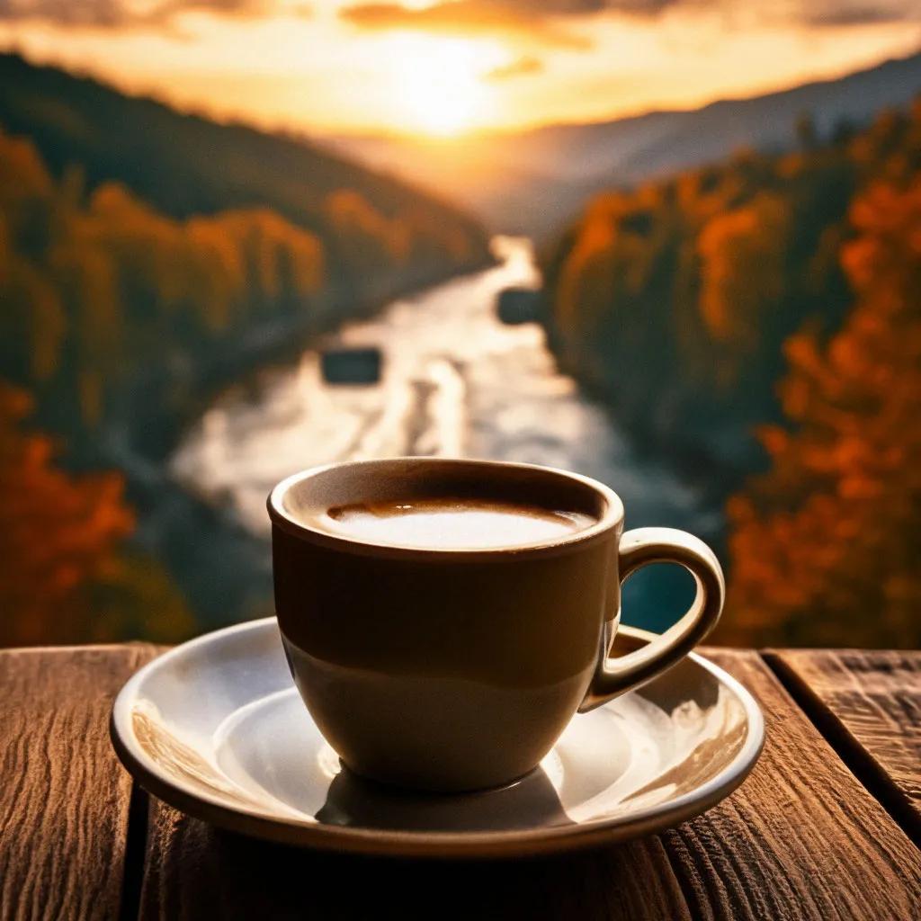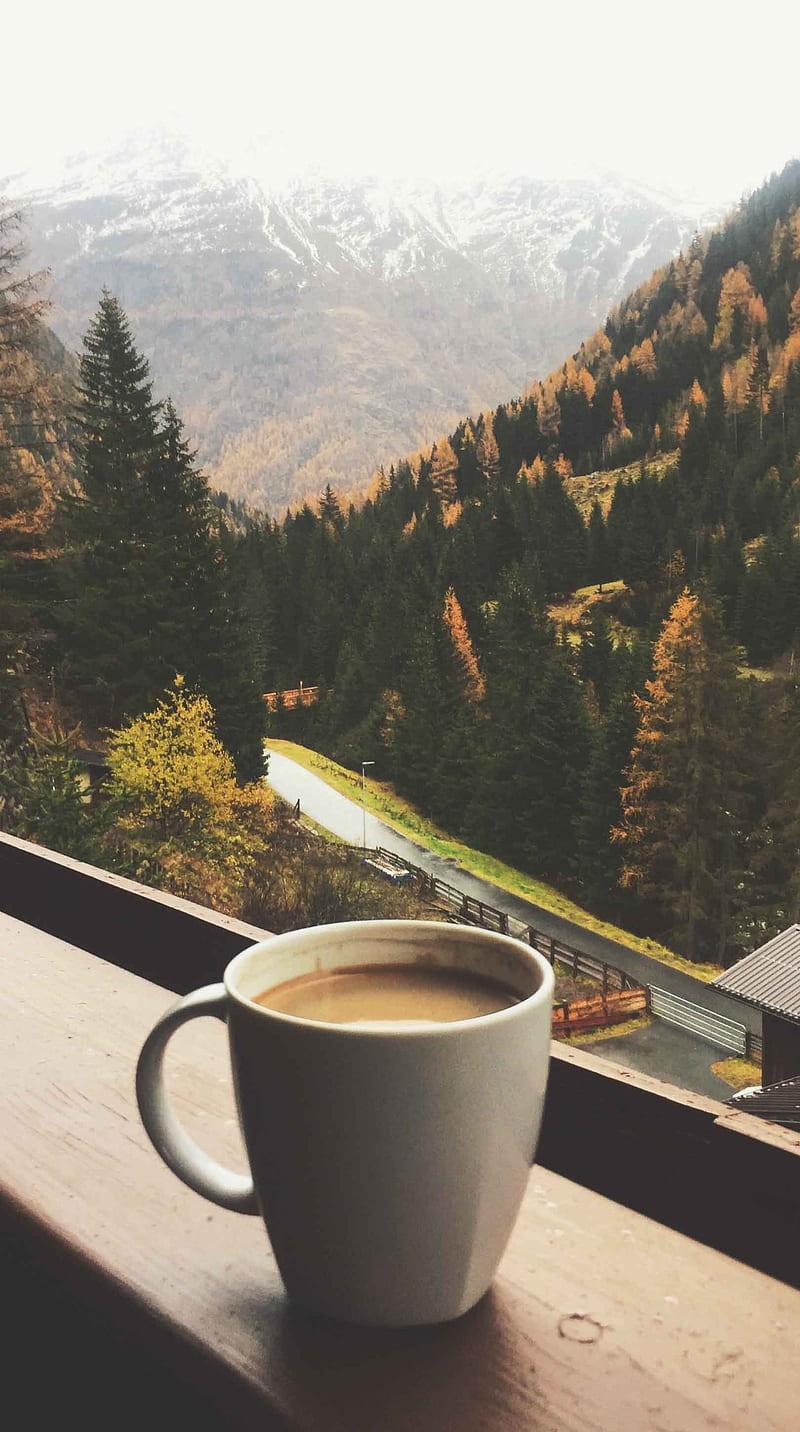 кофе на фоне гор