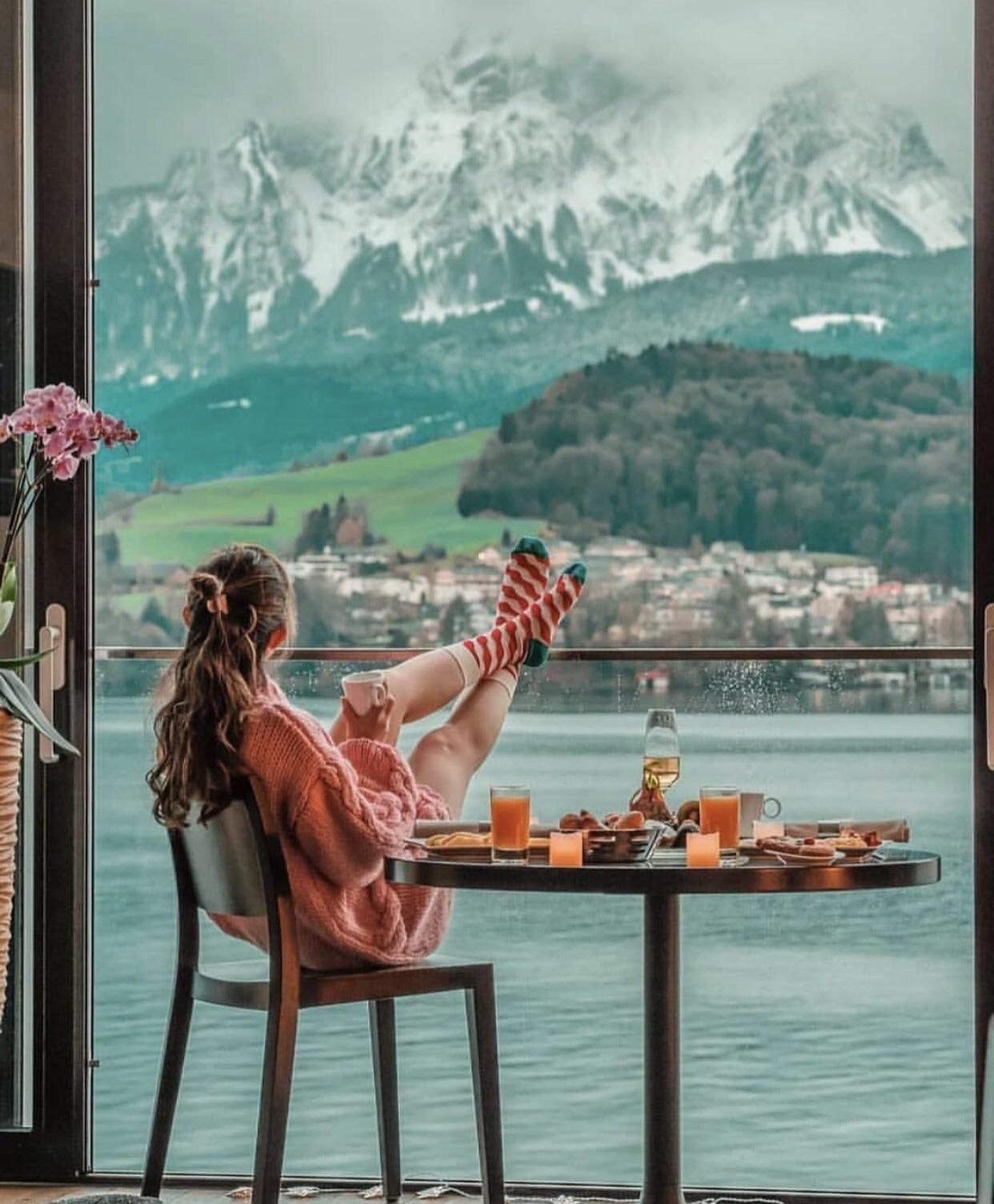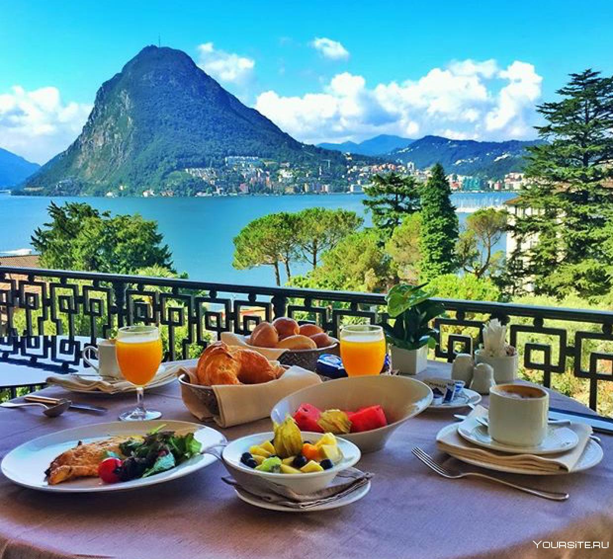 красивый завтрак с видом