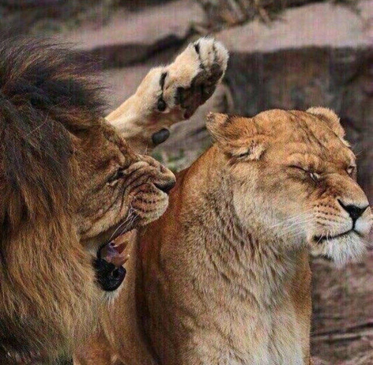 львица рычит на льва
