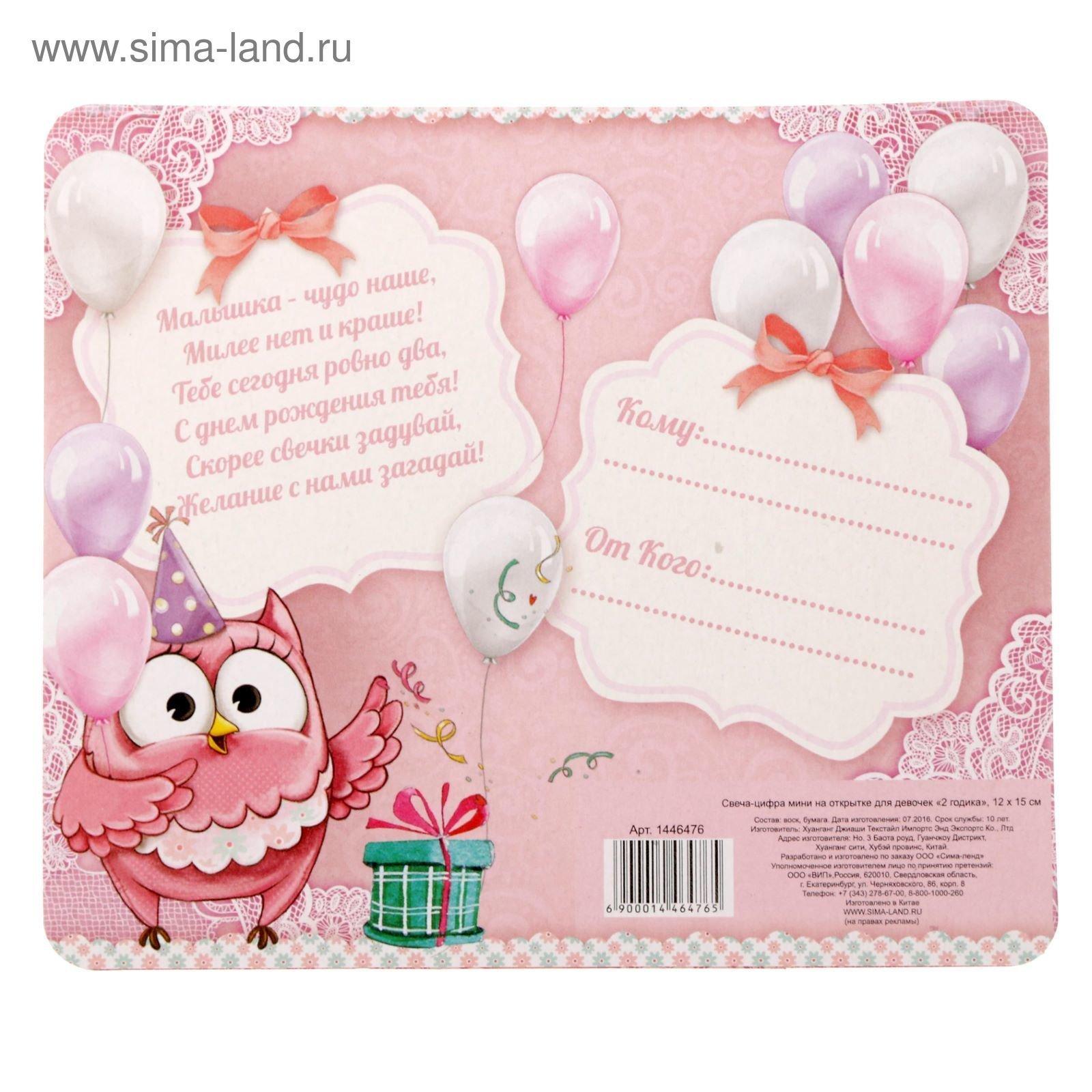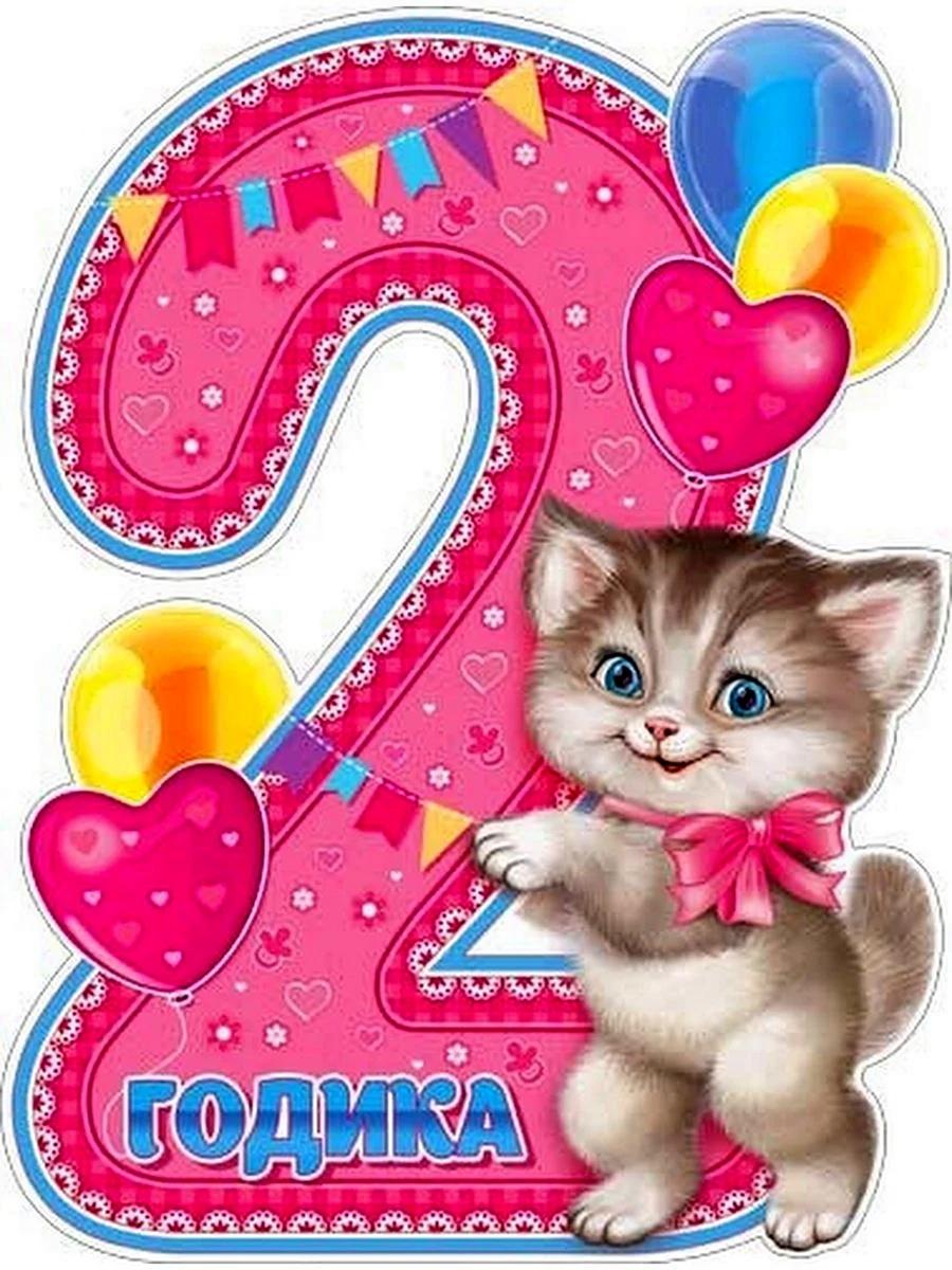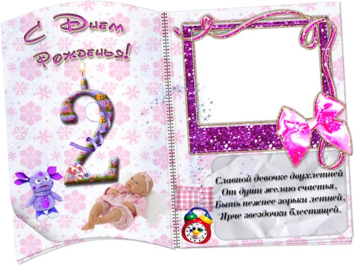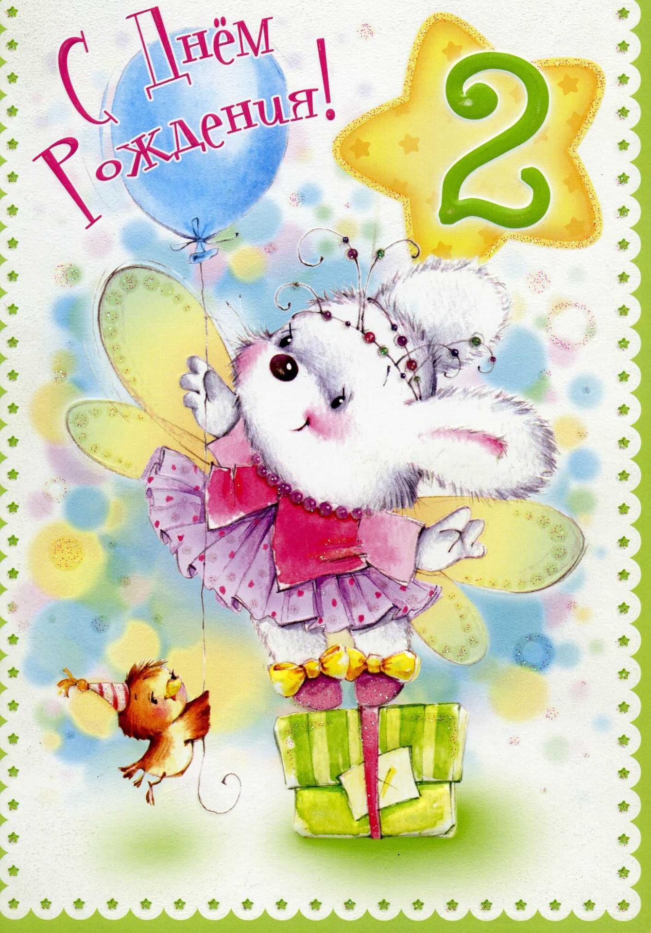 открытка на 2 годика девочке