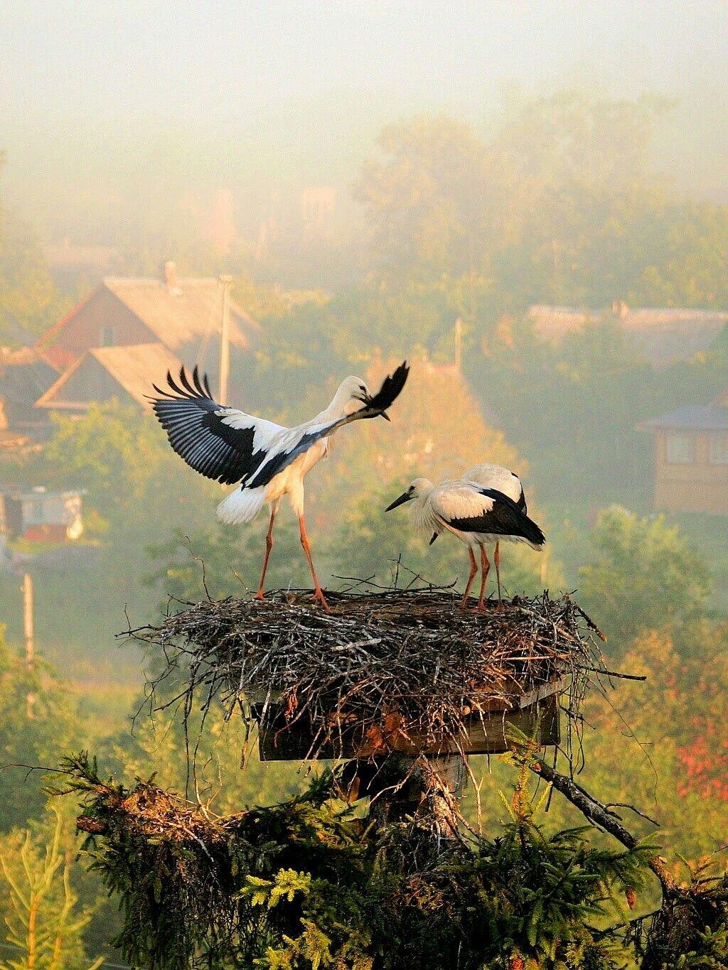 гнезда аистов