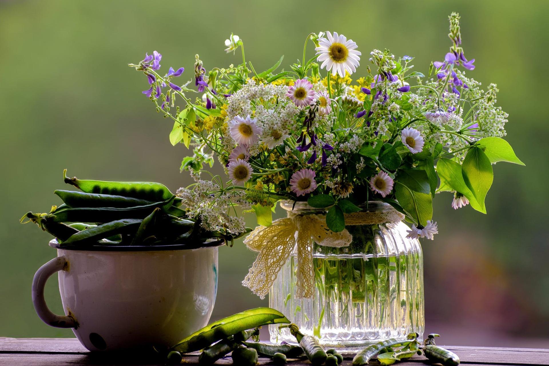 букетик полевых цветов и кофе