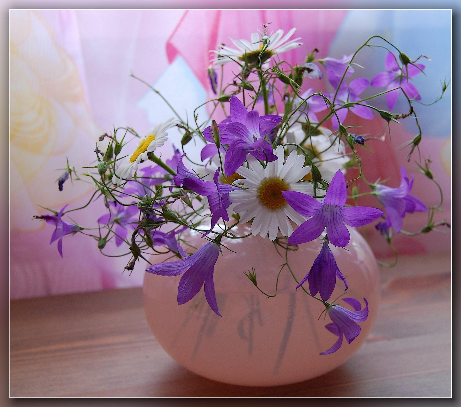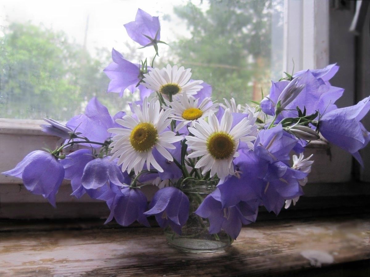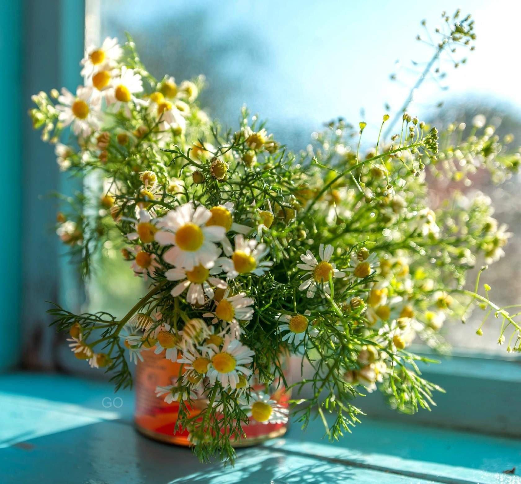 букет ромашек на окне