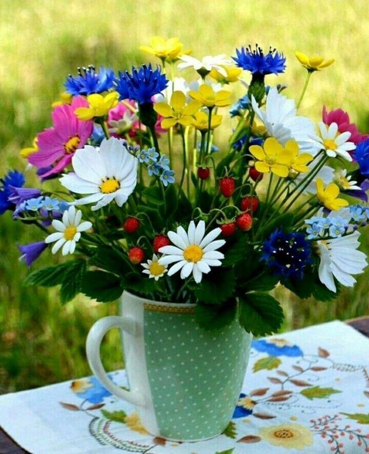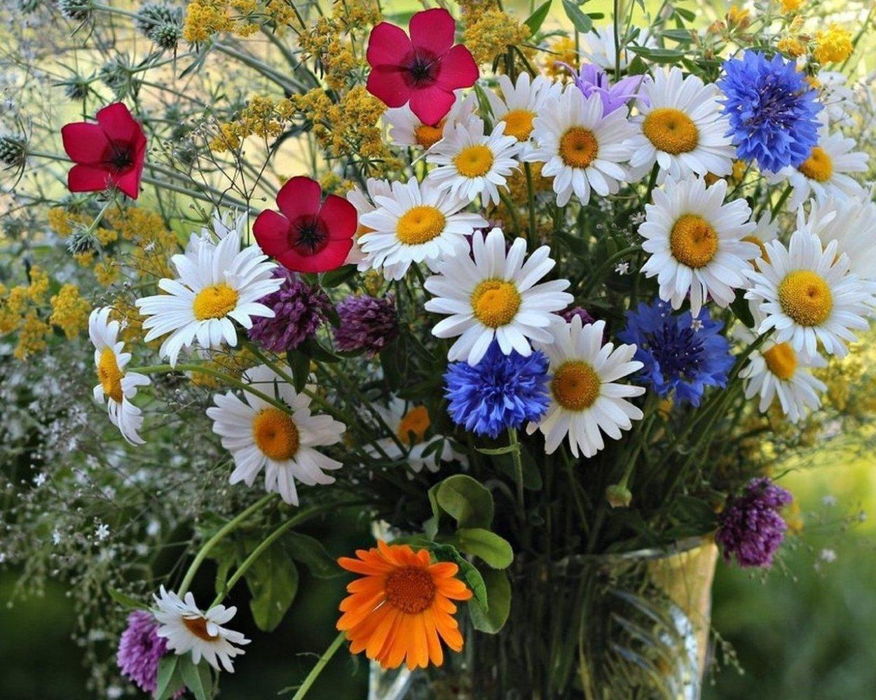 букеты полевых васильков ромашек маков