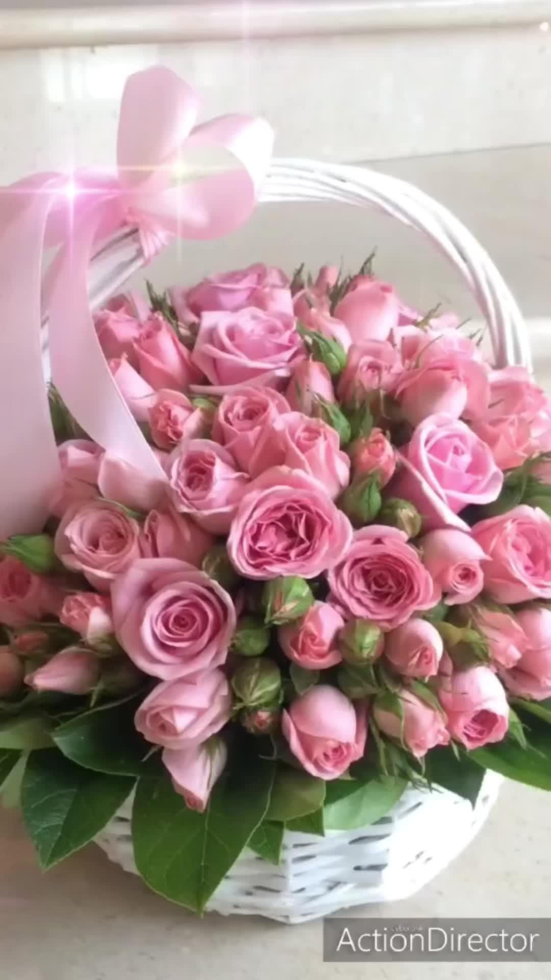 корзина розовых роз
