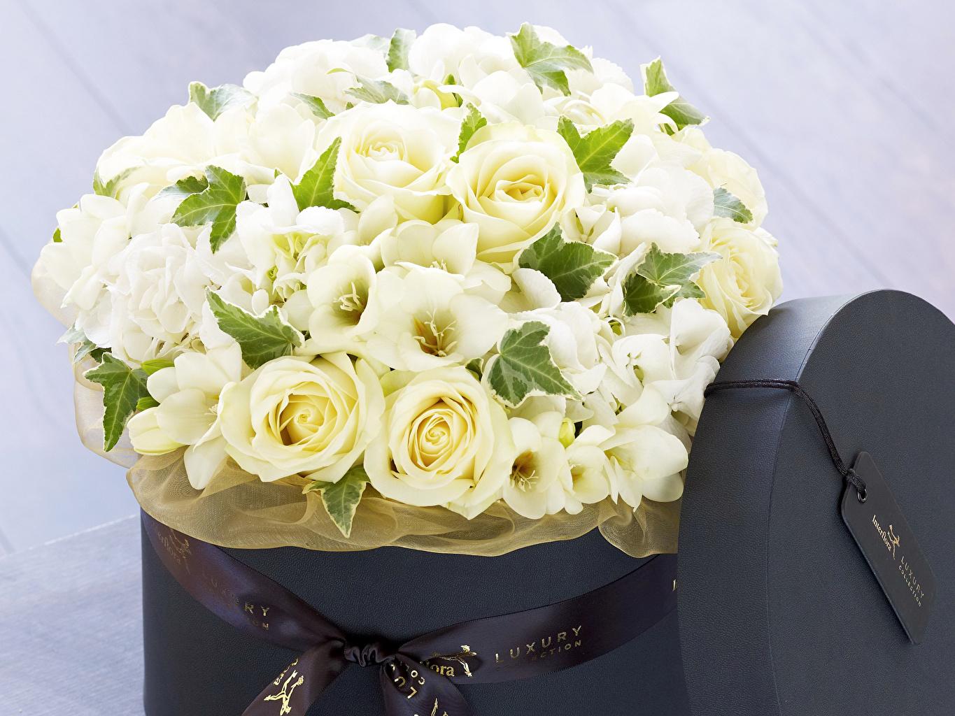 белые розы в коробке