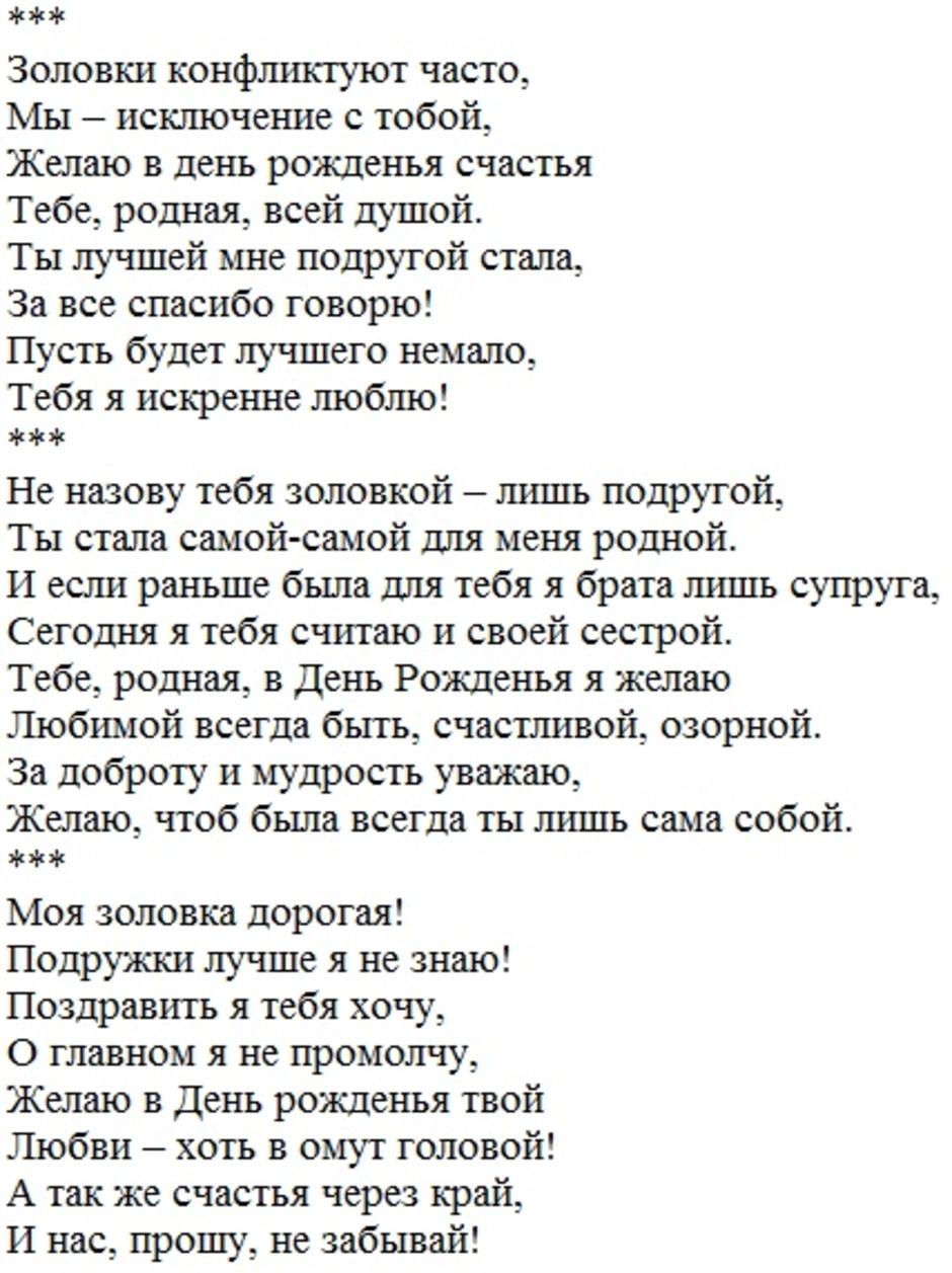 стих на день рождения снохе от золовки