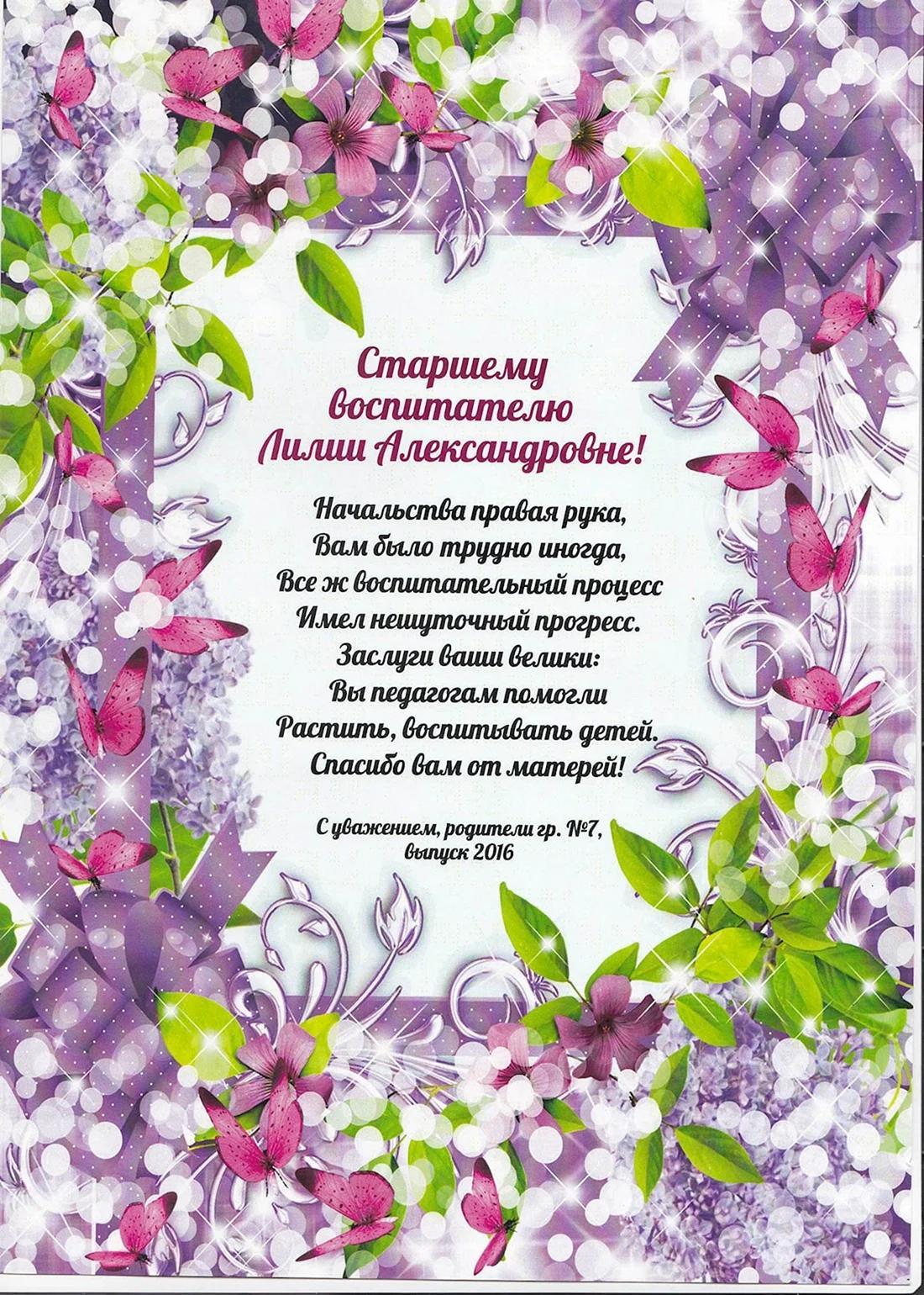 с днём рождения воспитателю детского сада от родителей