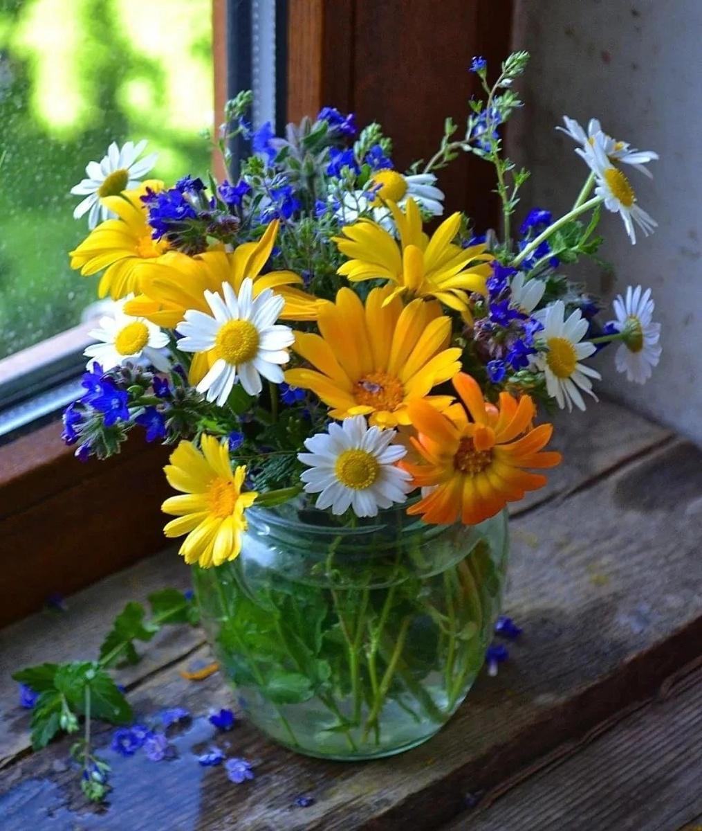 летний букет на окне
