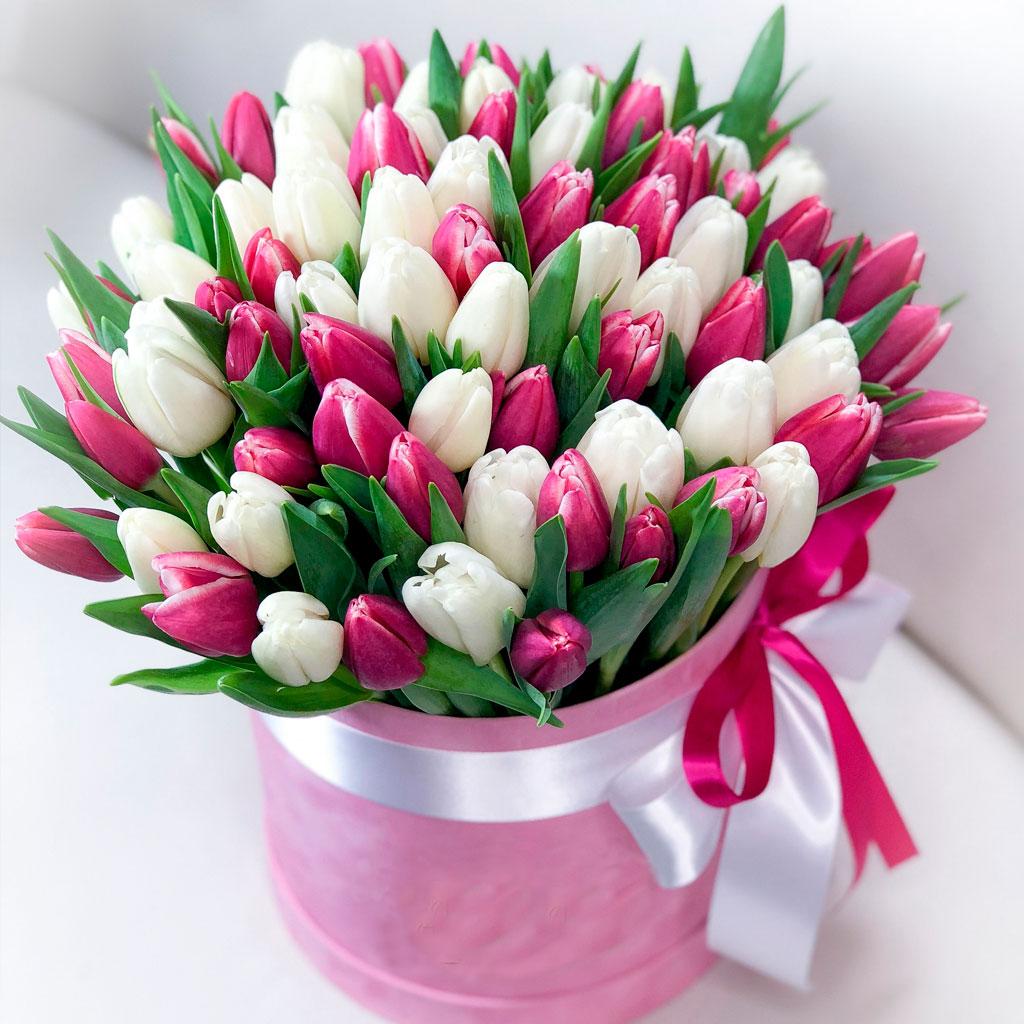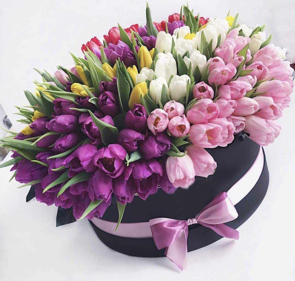 101 тюльпан в шляпной коробке