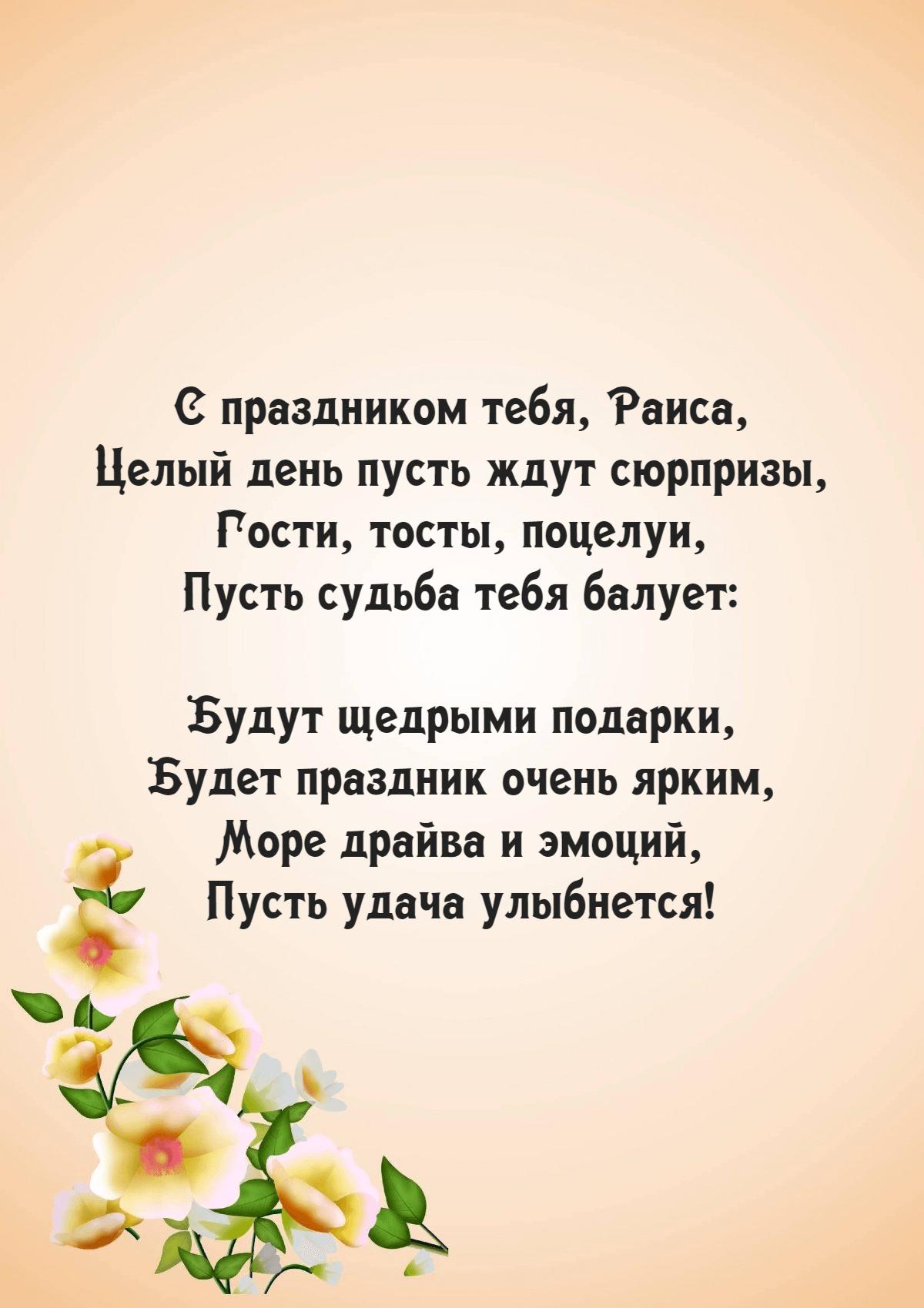 поздравление с днём рождения раиса
