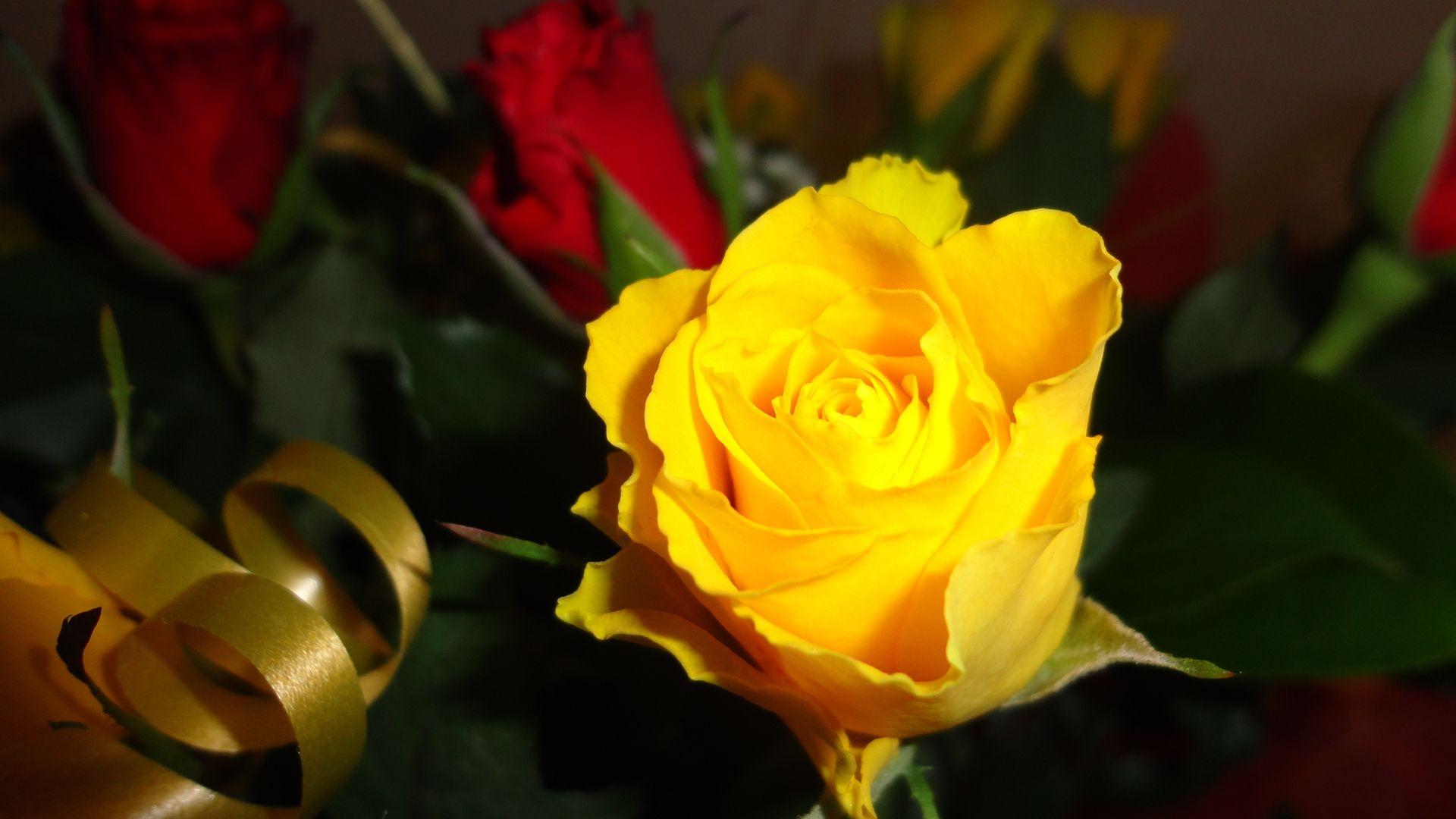 роза желто красная