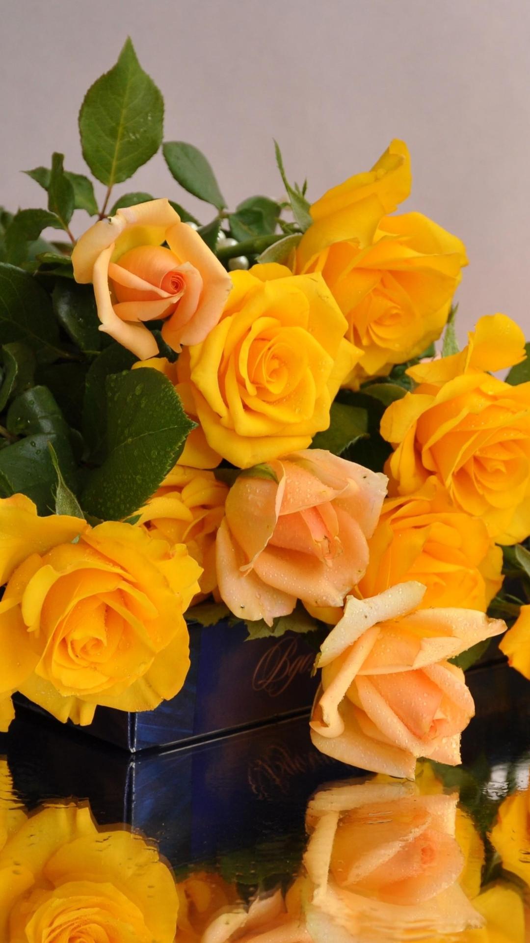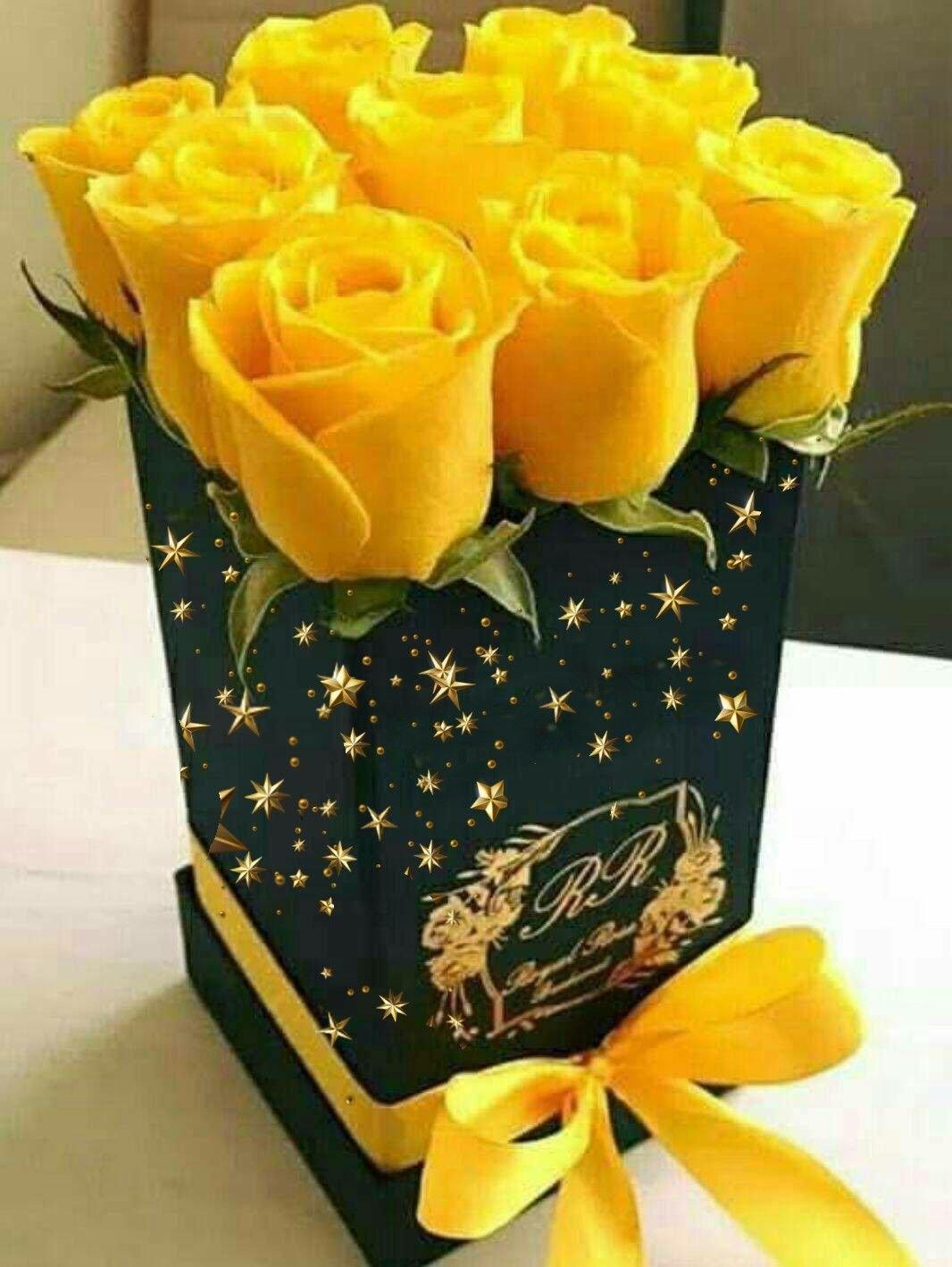 коробка с желтыми розами