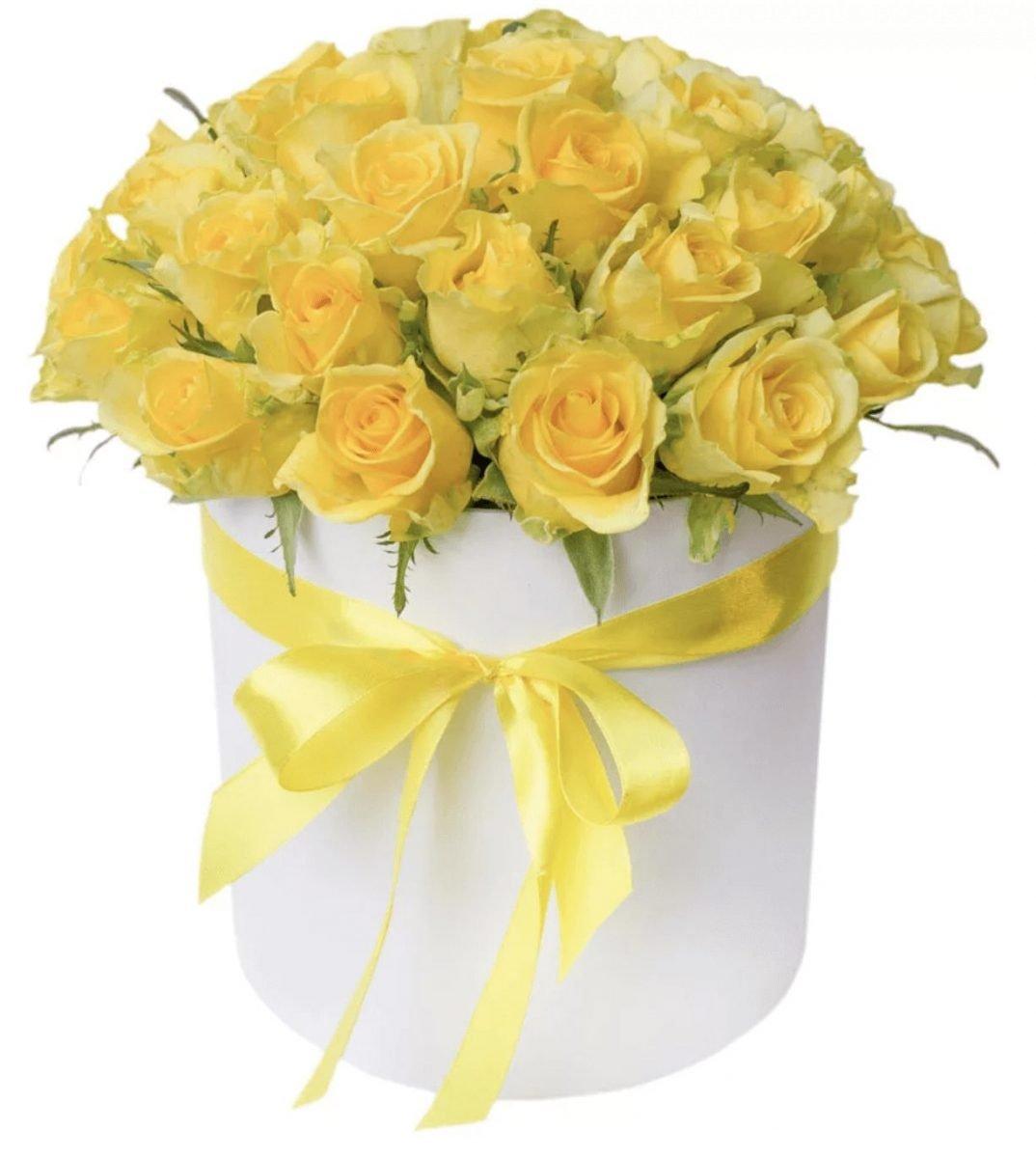 букет в шляпной коробке желтый