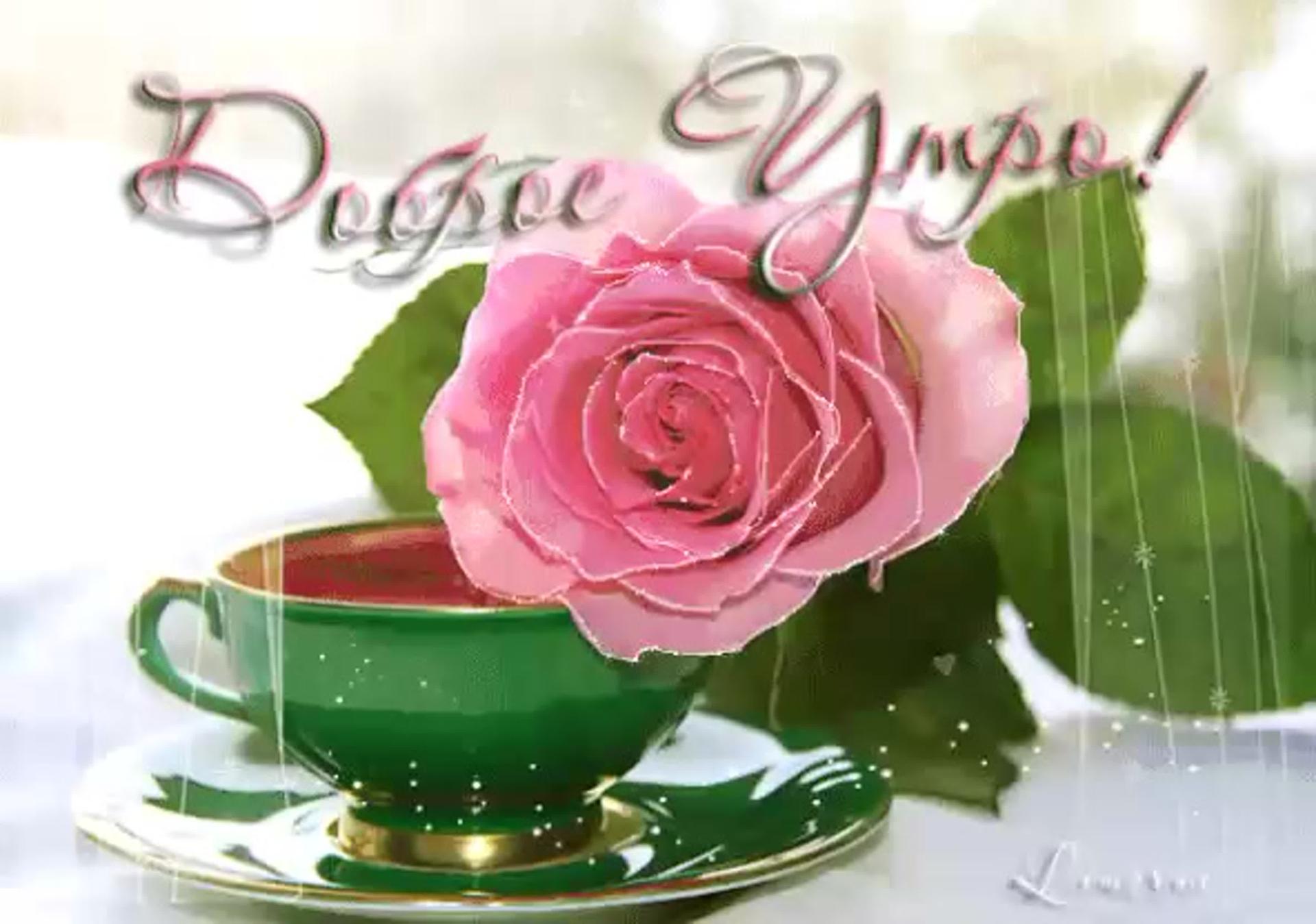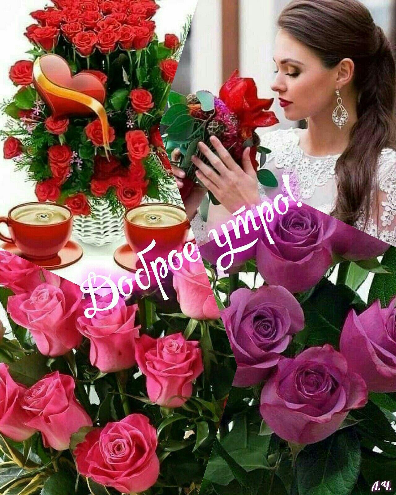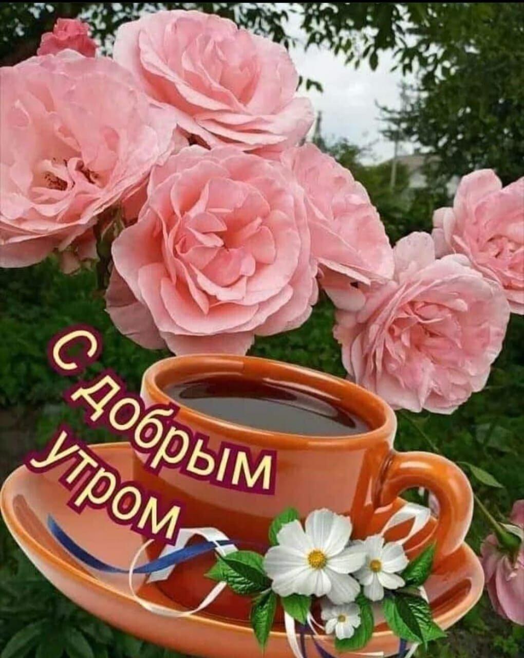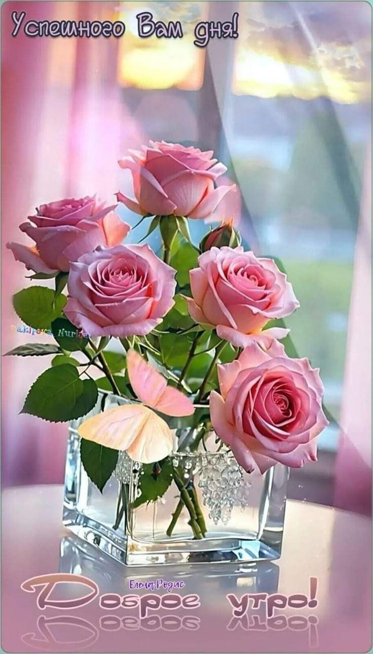 Красивые картинки С цветами с пожеланиями доброго утра с розами с надписями