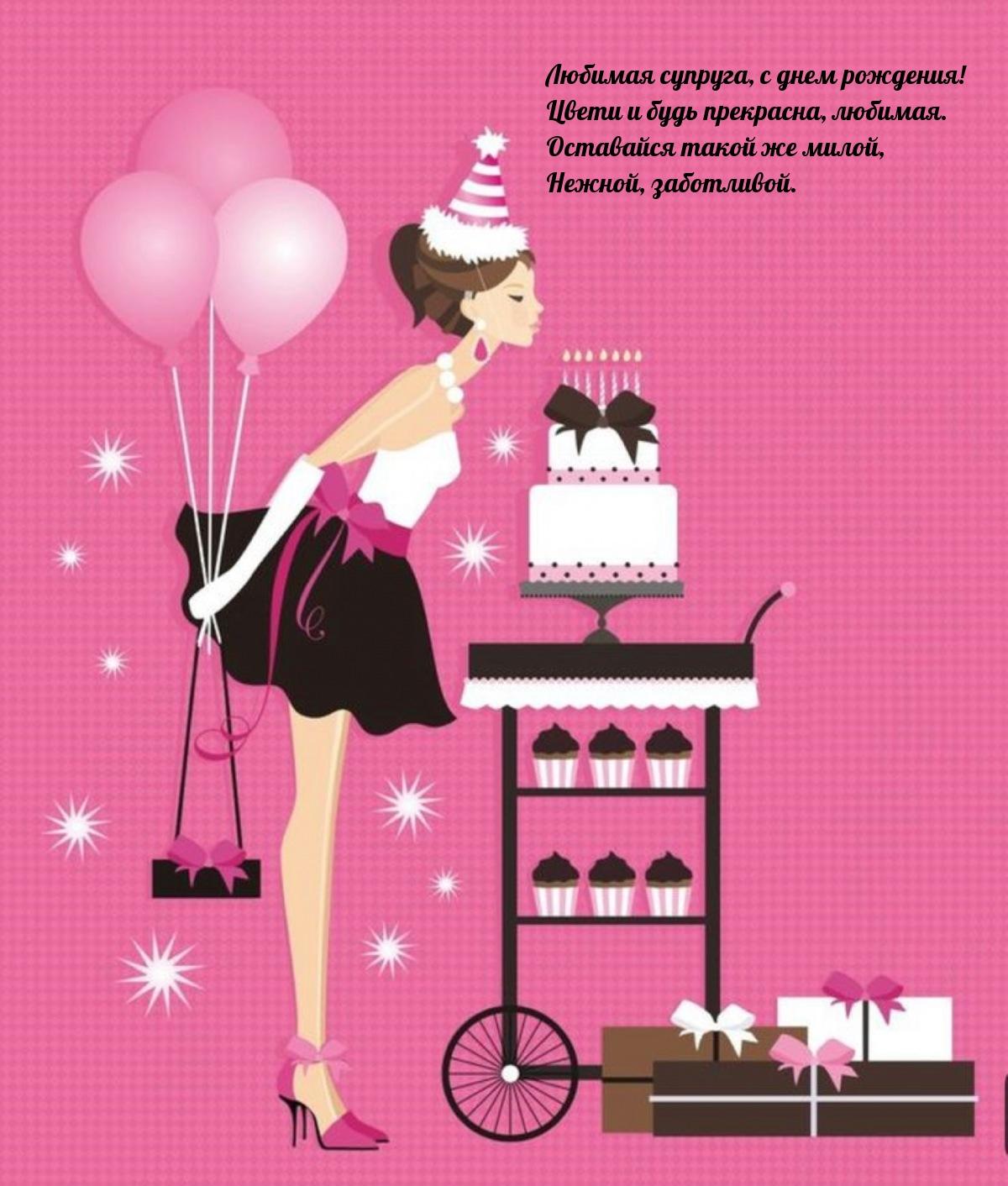открытка с днём рождения для жены