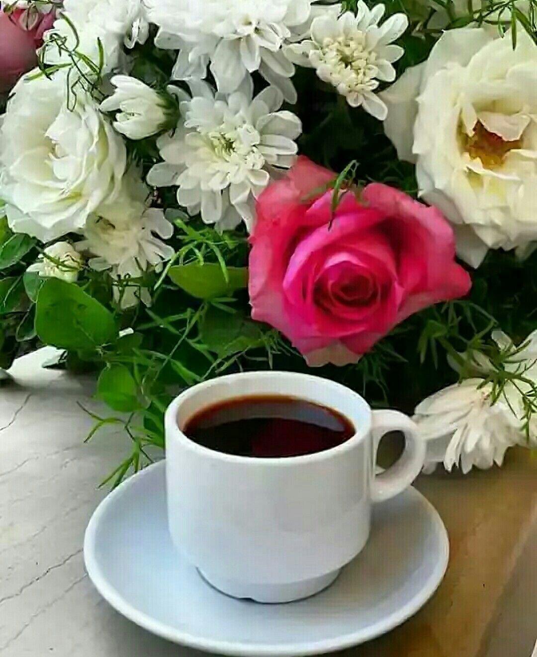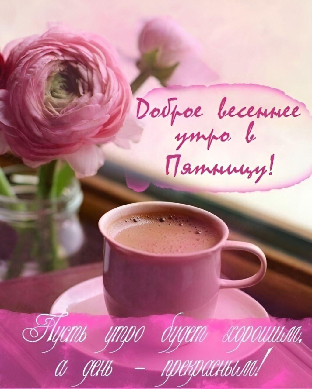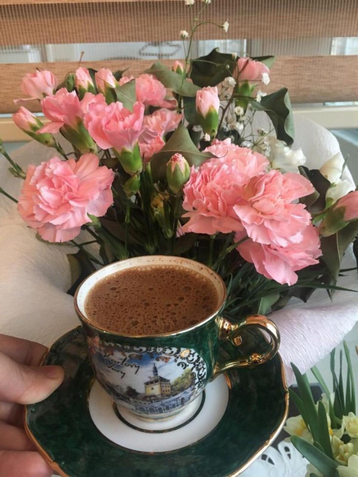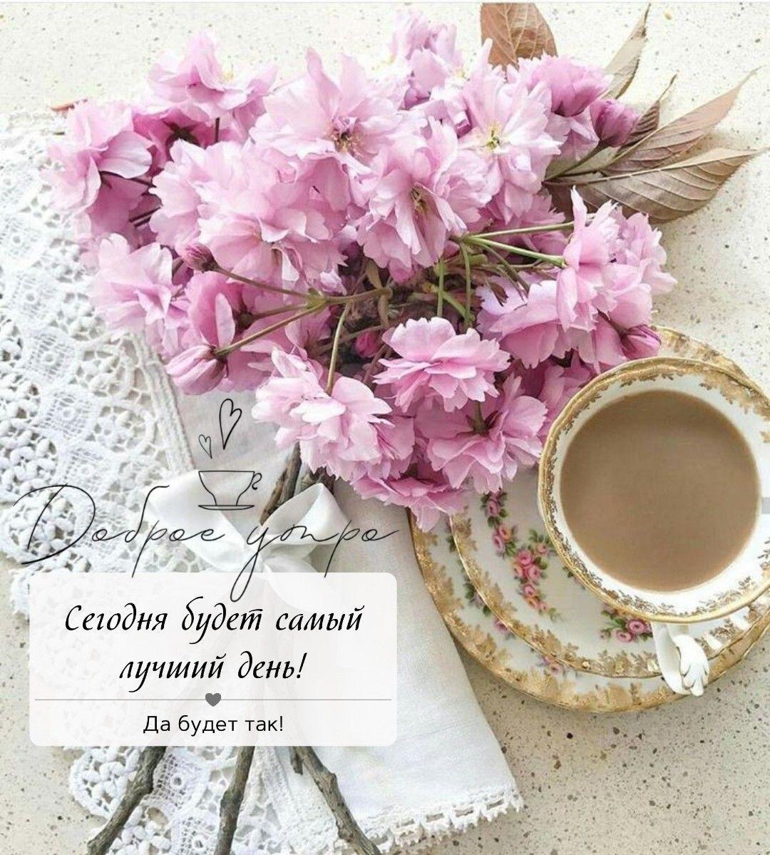 Красивые картинки Доброе утро с кофе и цветами чашкой надписью с надписями