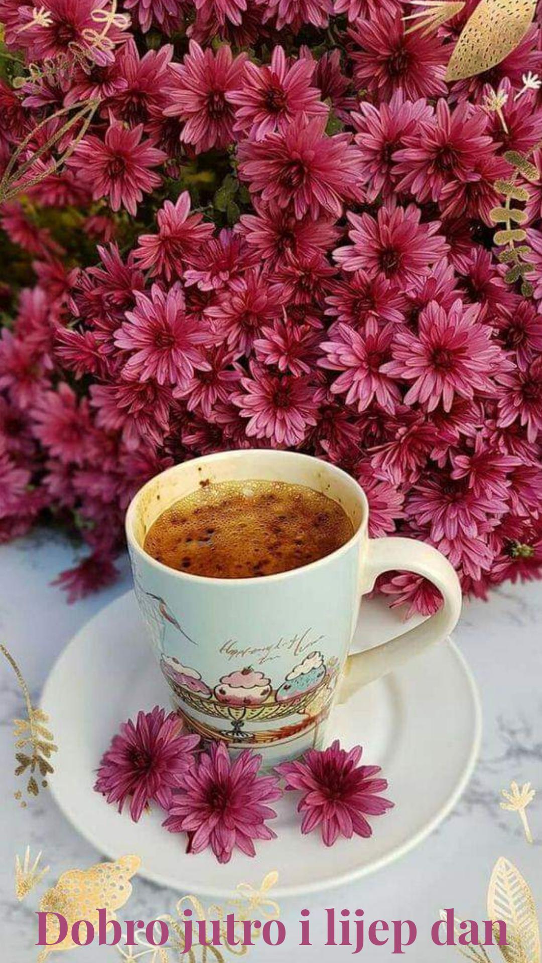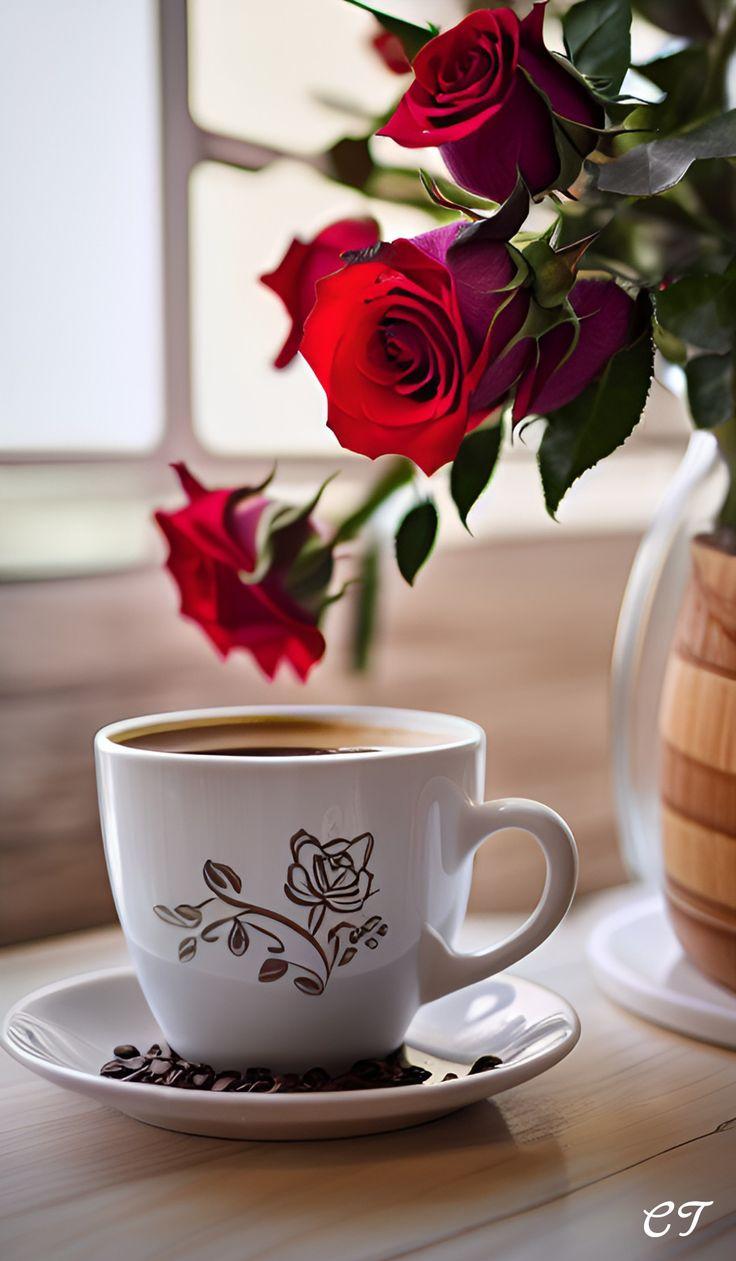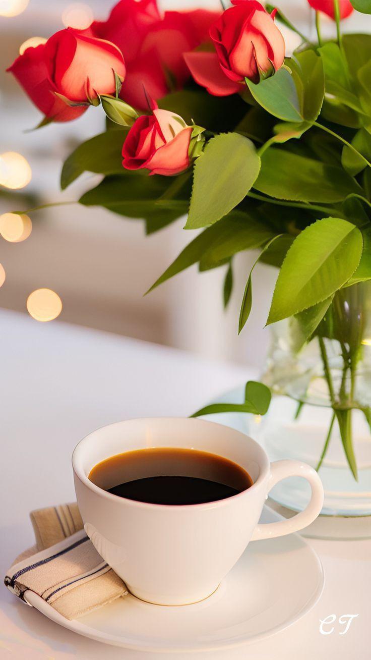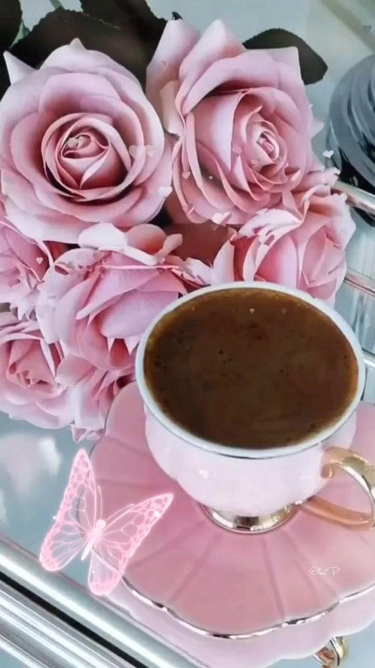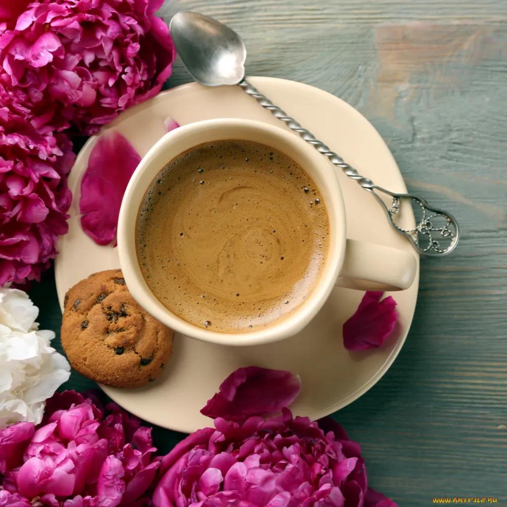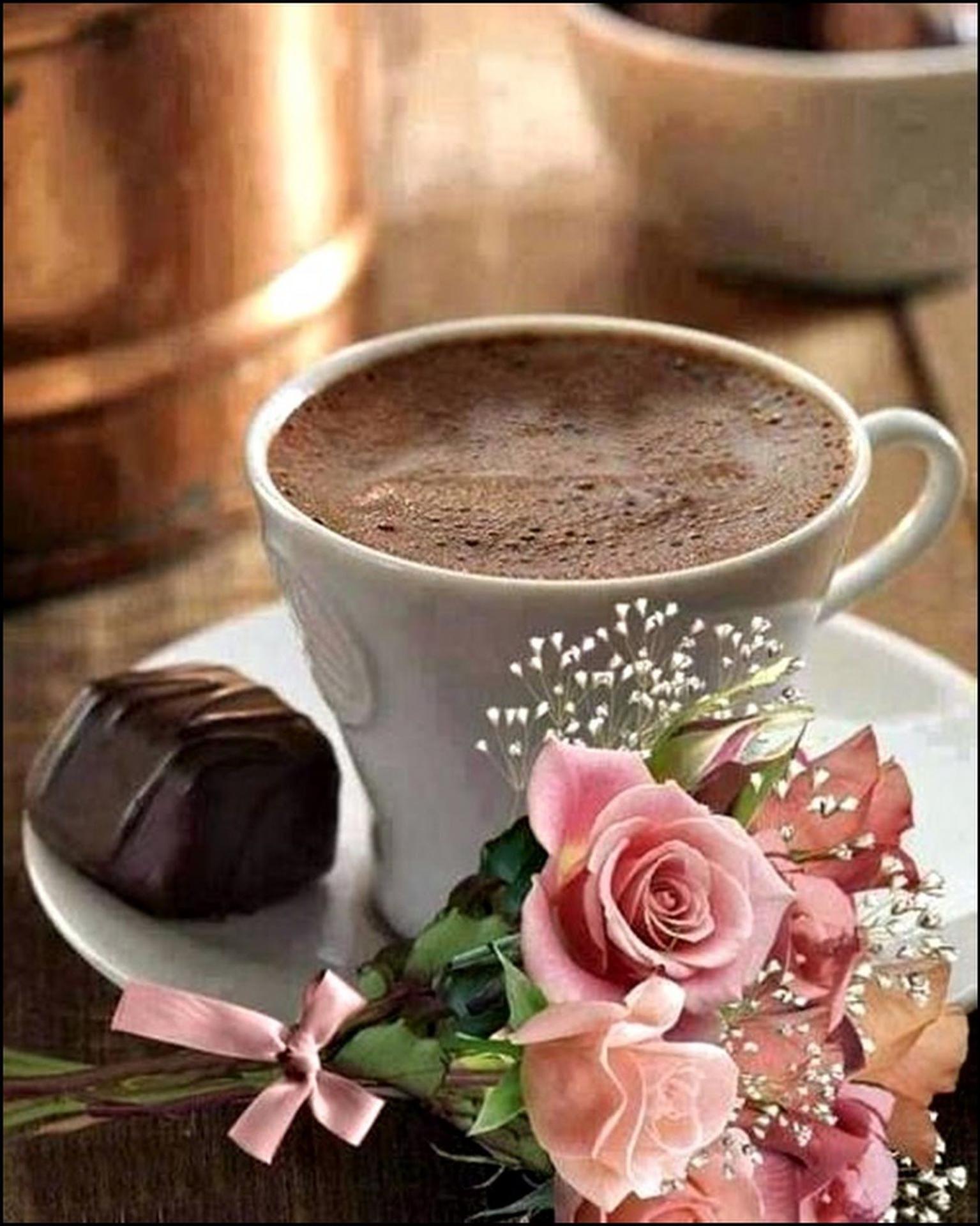 Красивые картинки Доброе утро с кофе и цветами чашкой надписью с надписями