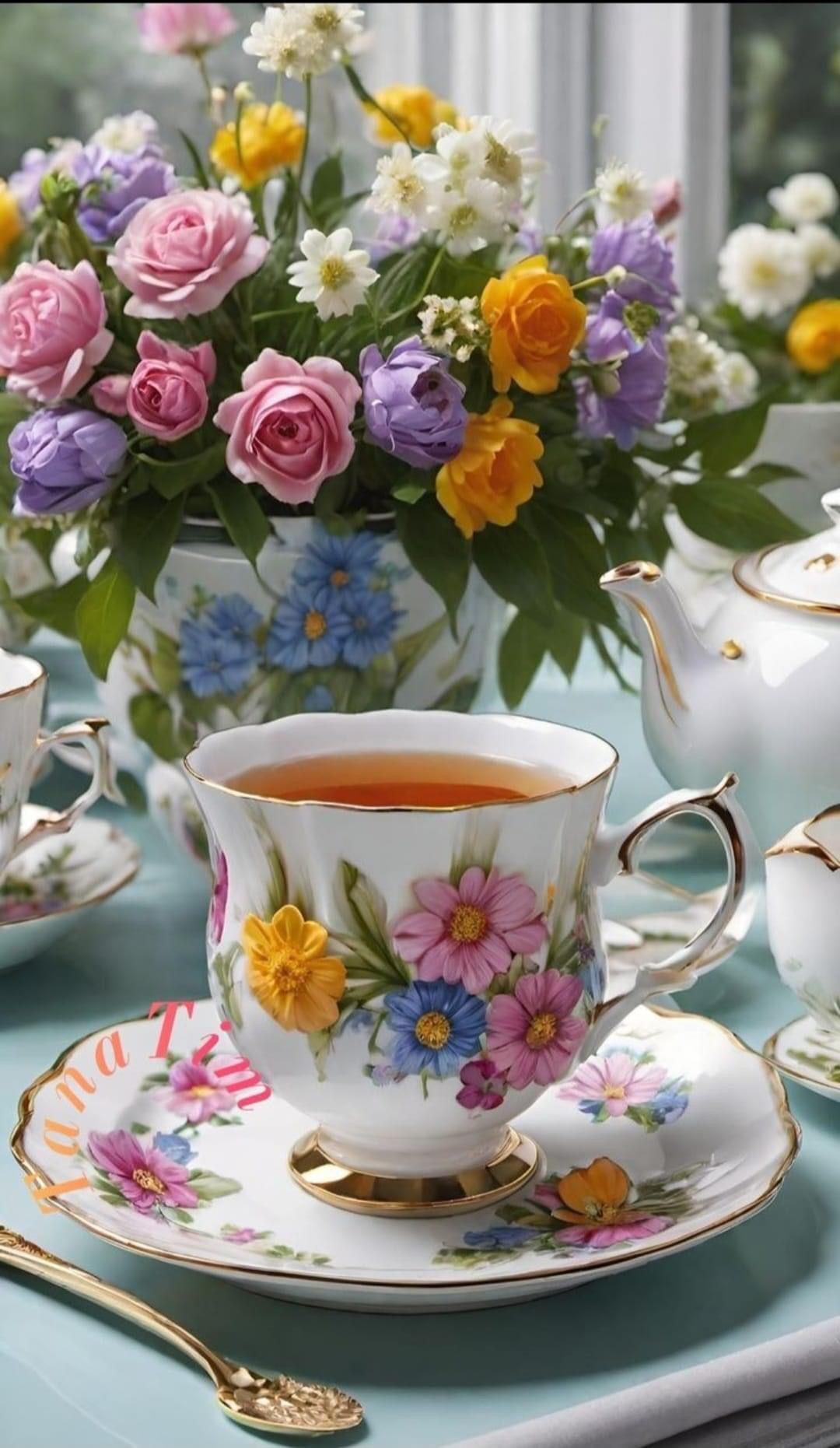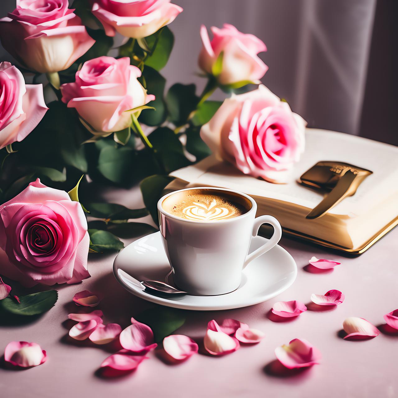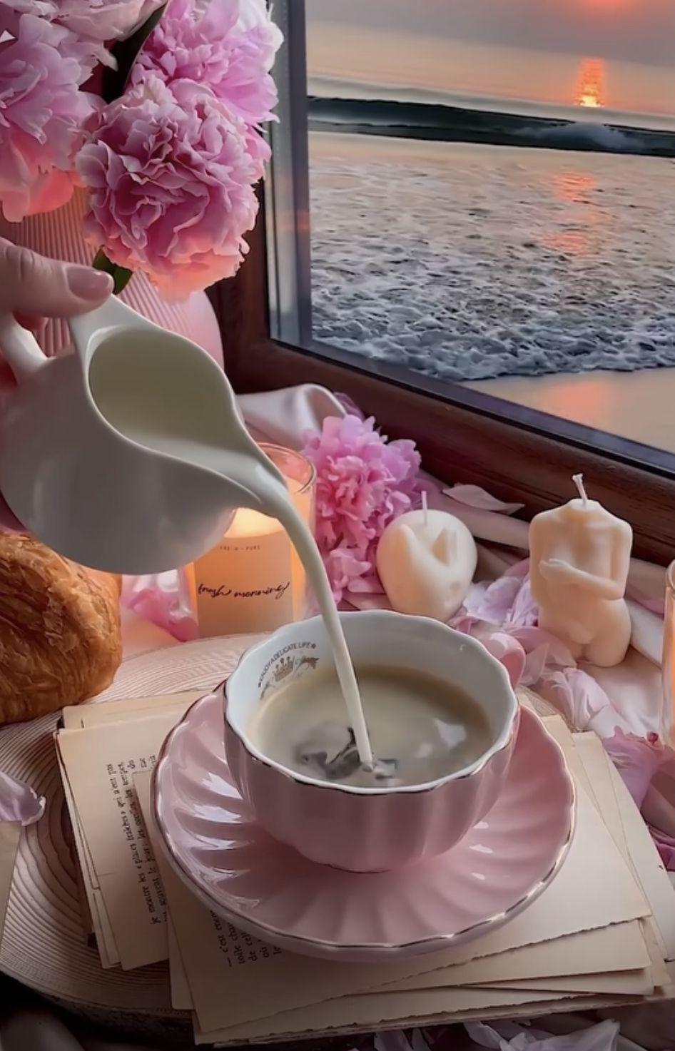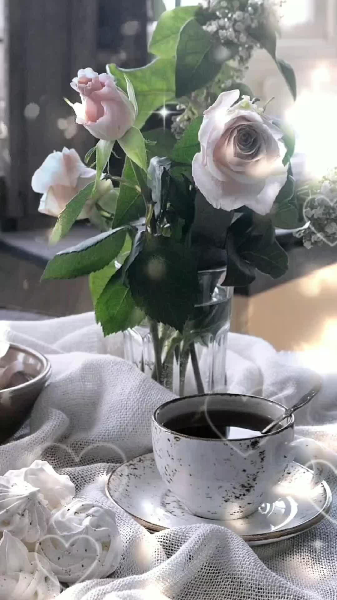 Красивые картинки Доброе утро с кофе и цветами чашкой надписью с надписями