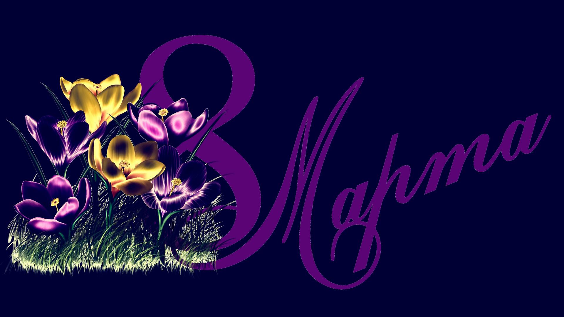 Красивые картинки На рабочий стол с 8 марта с цветами с надписями