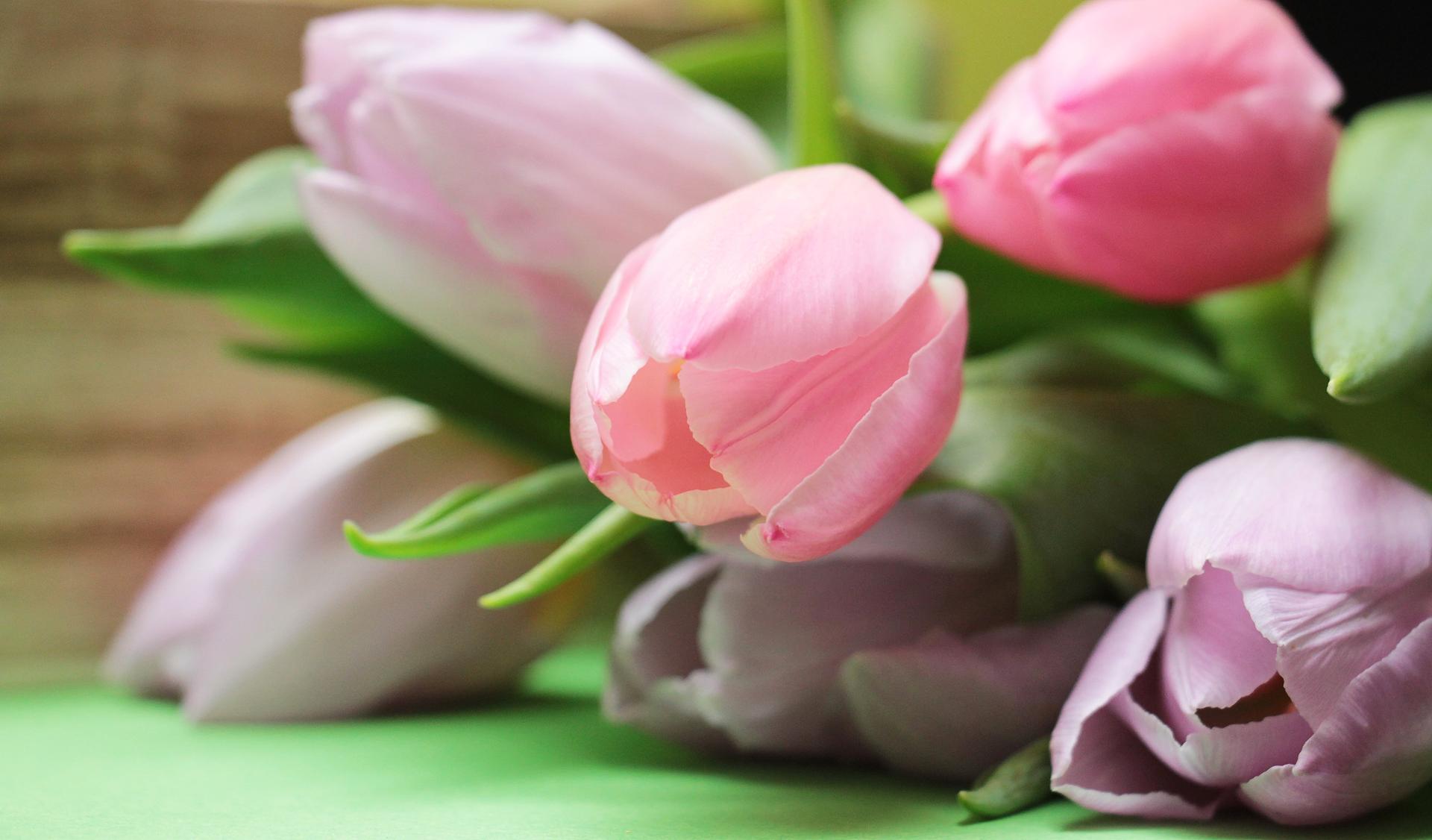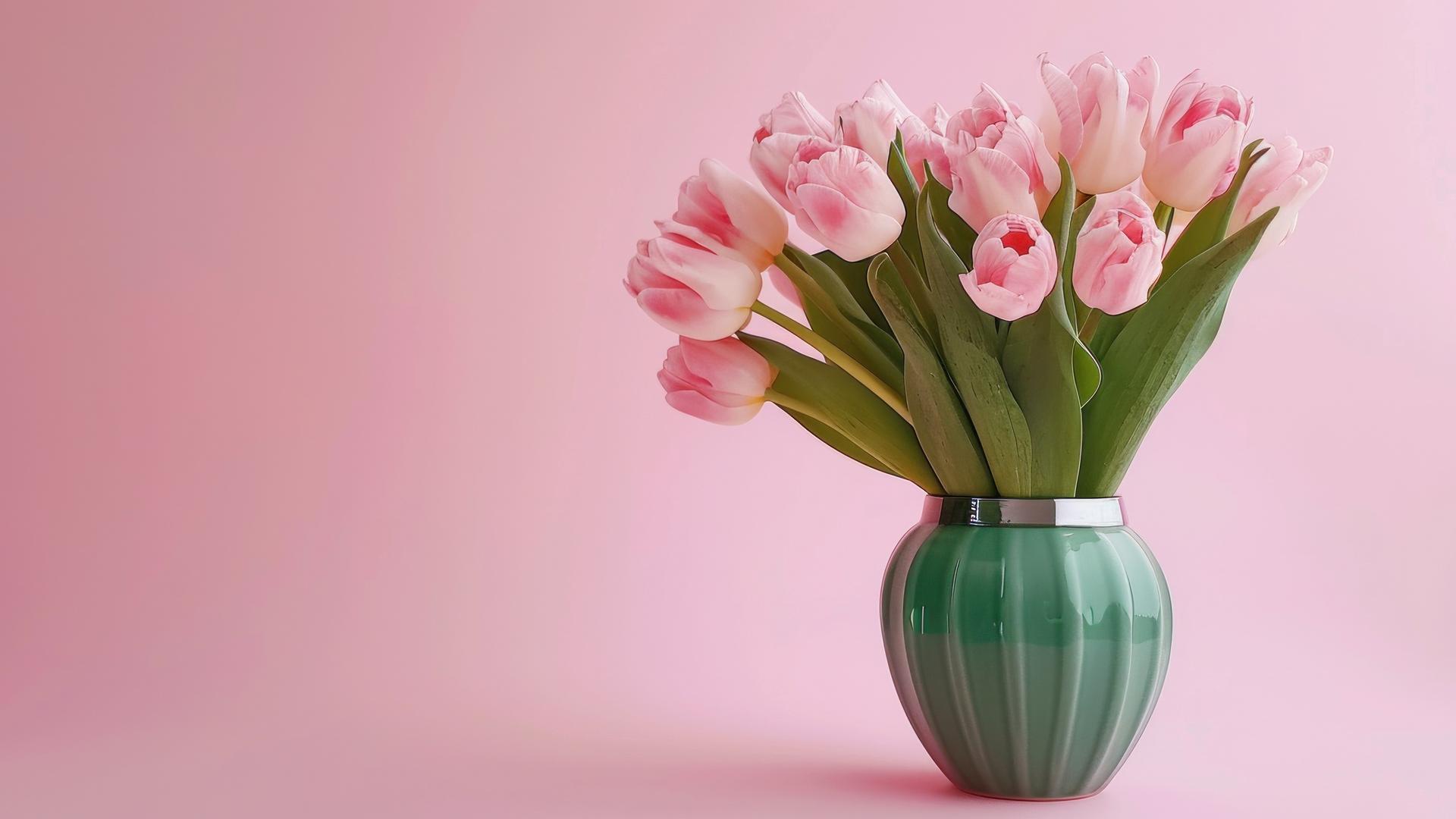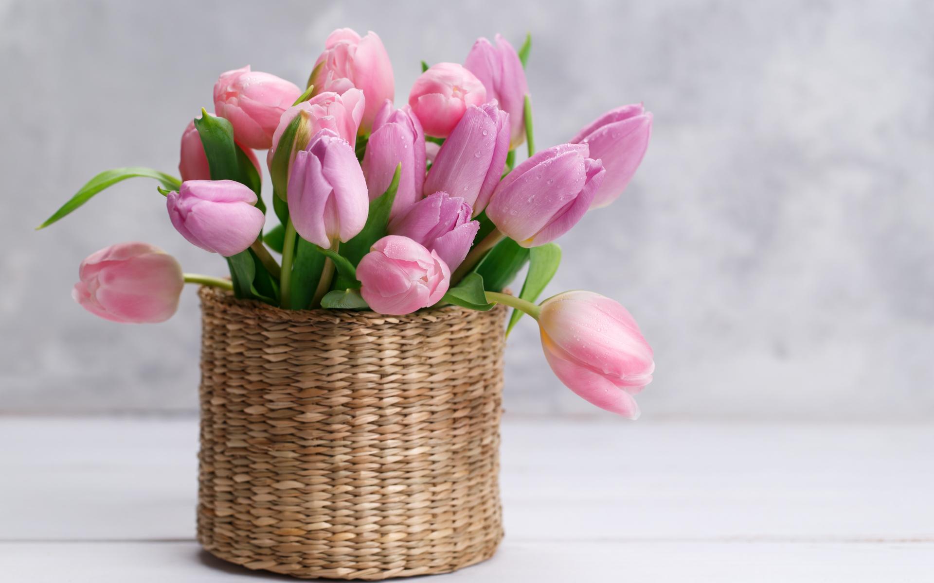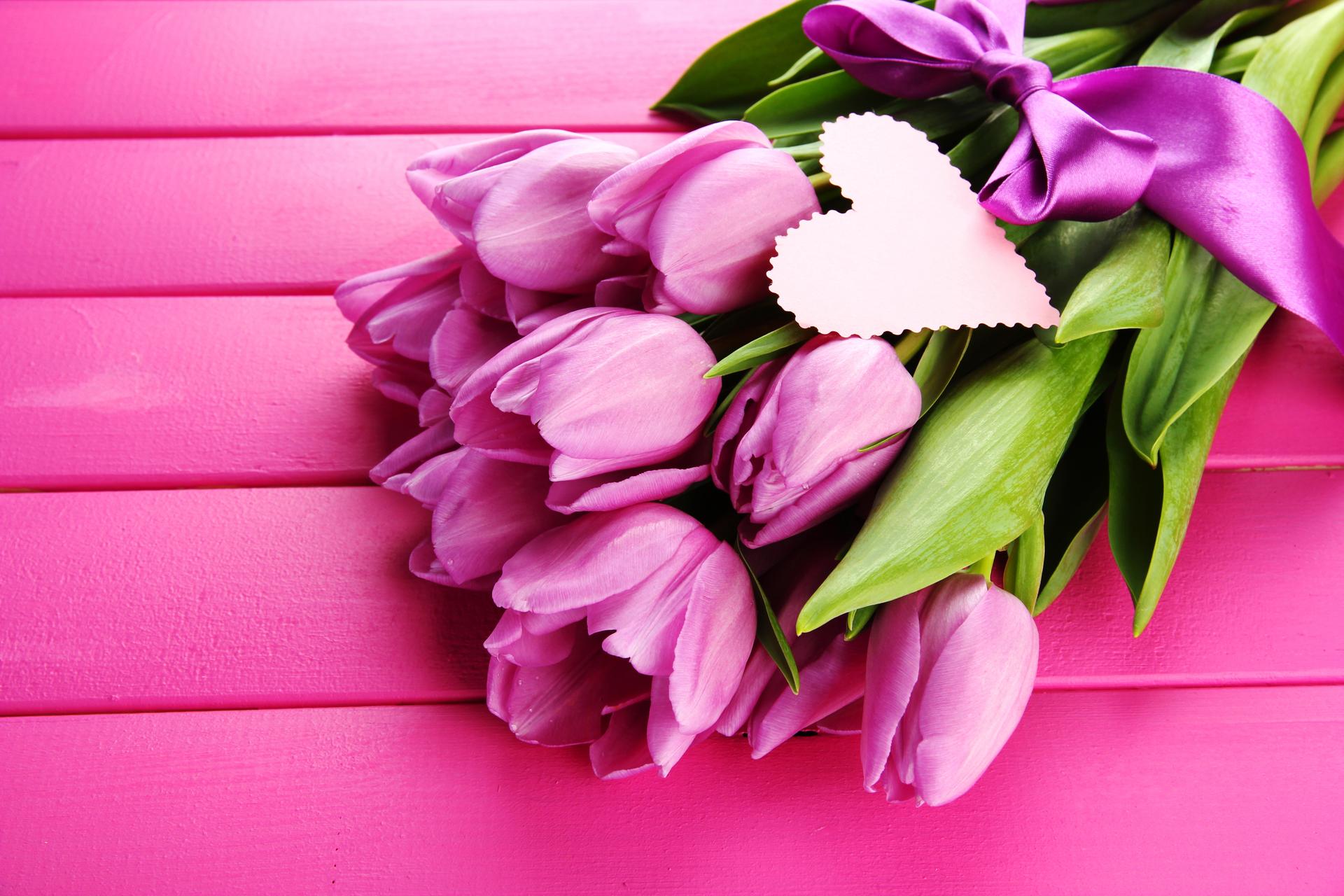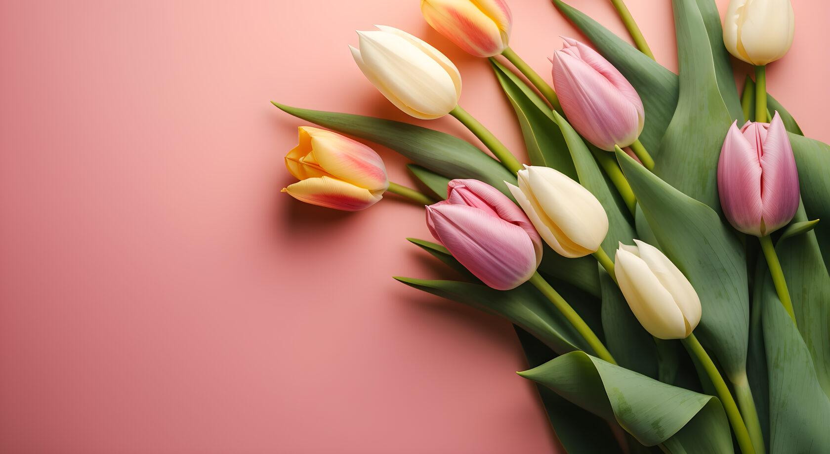 тюльпаны на розовом фоне