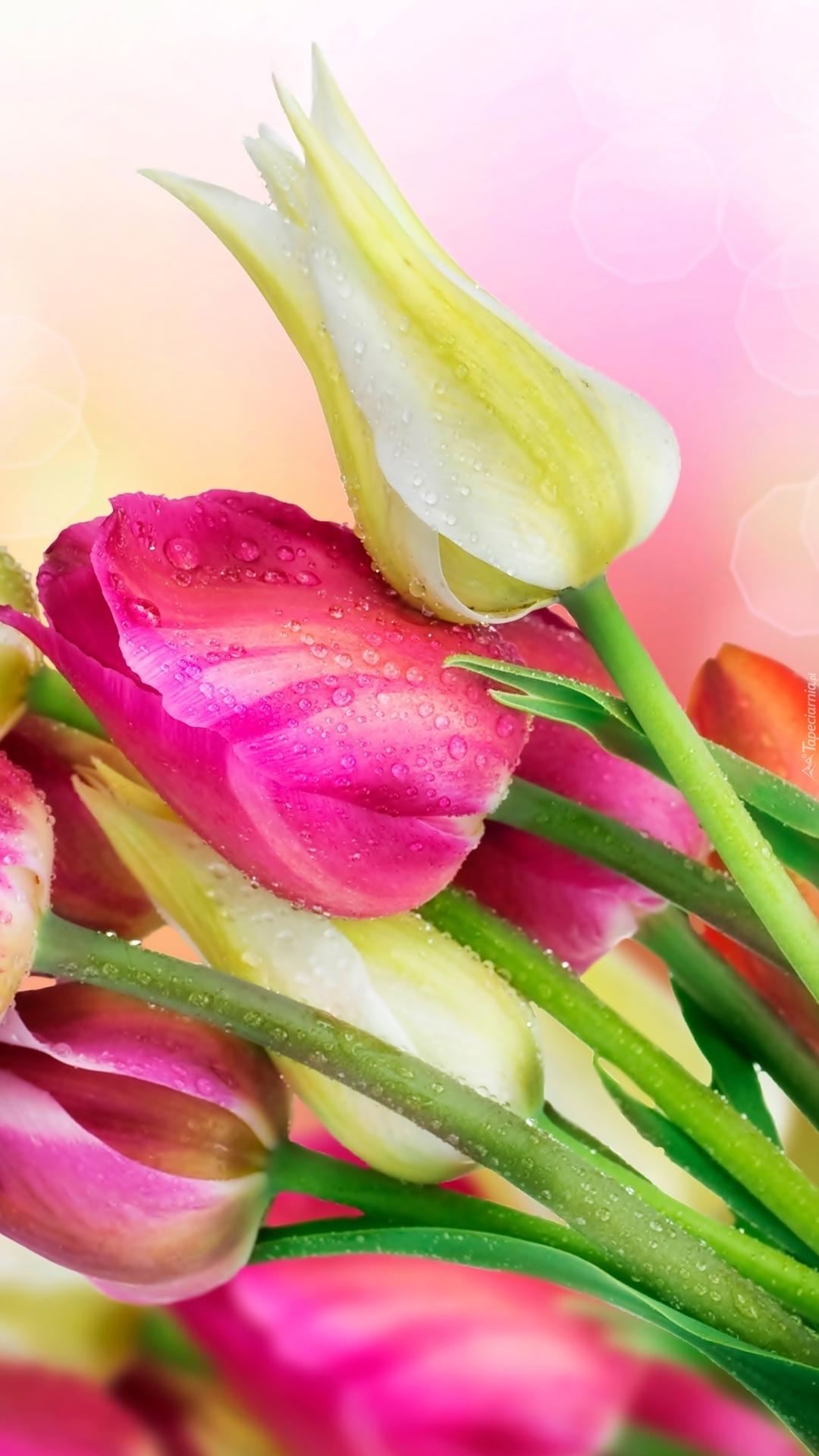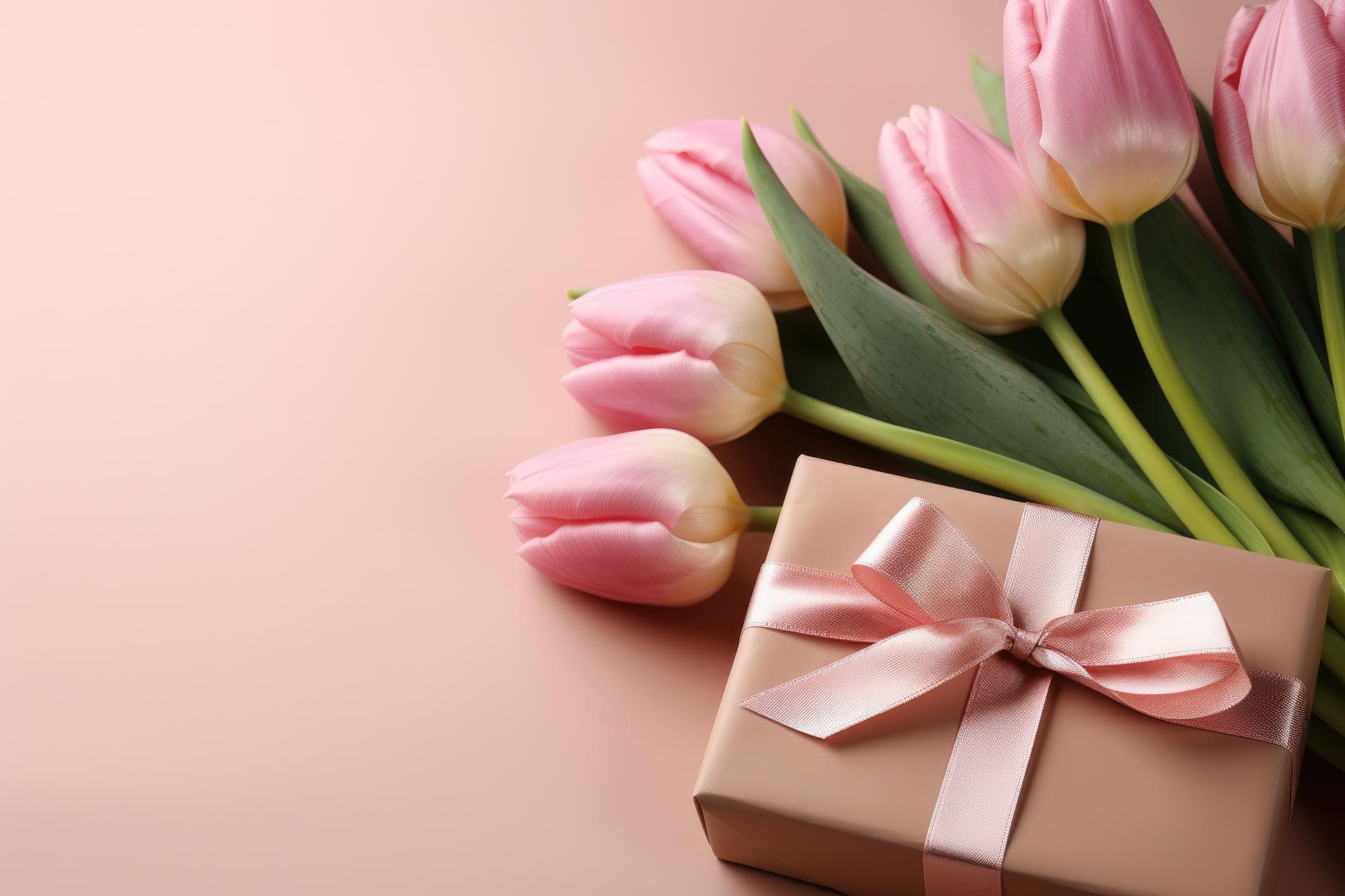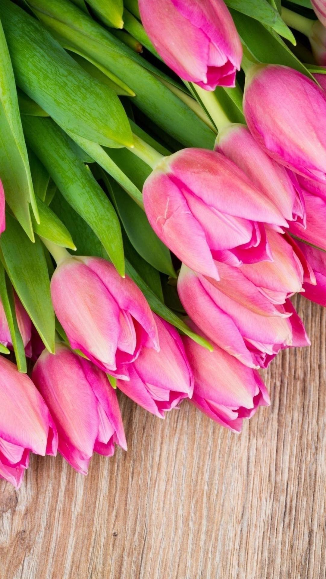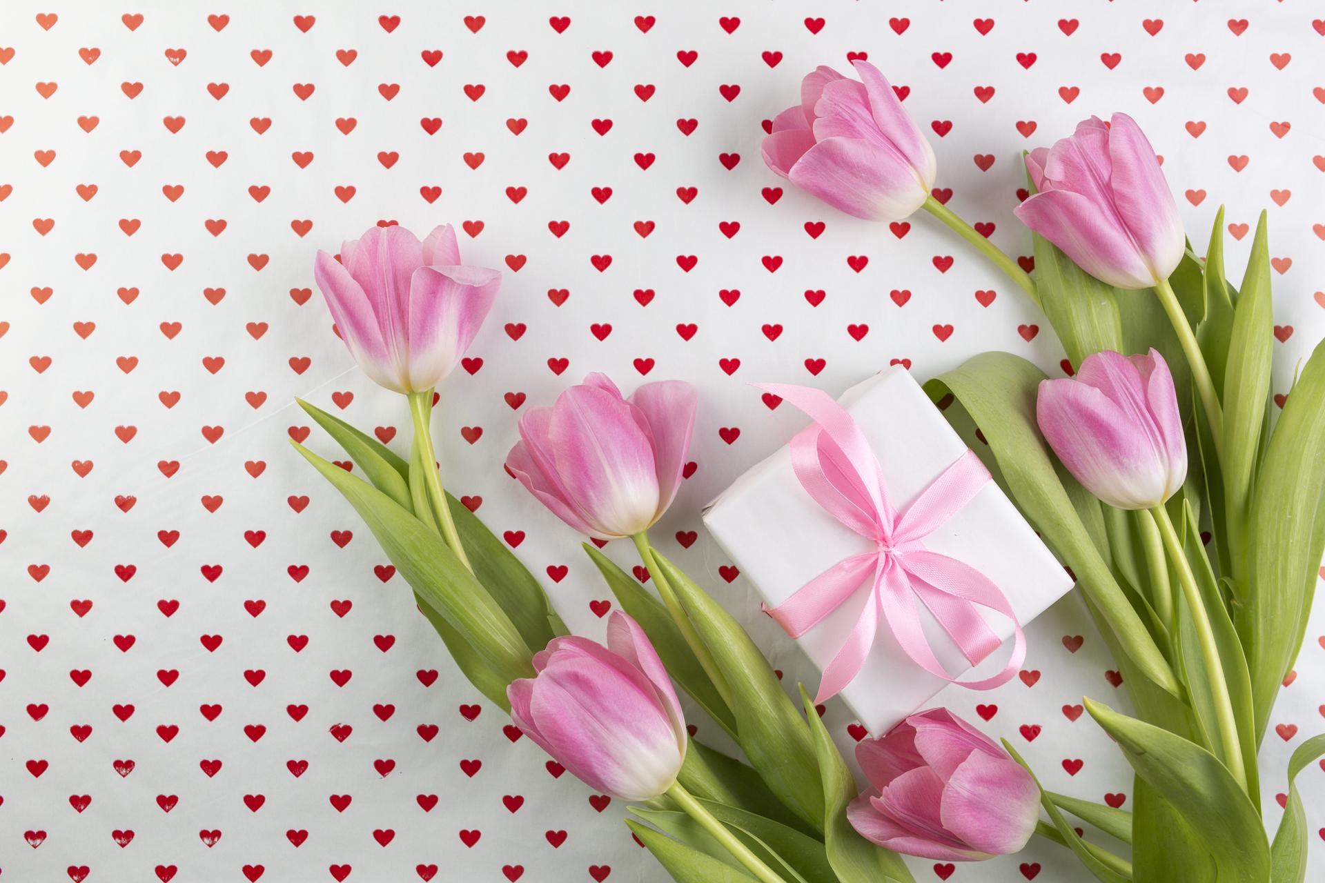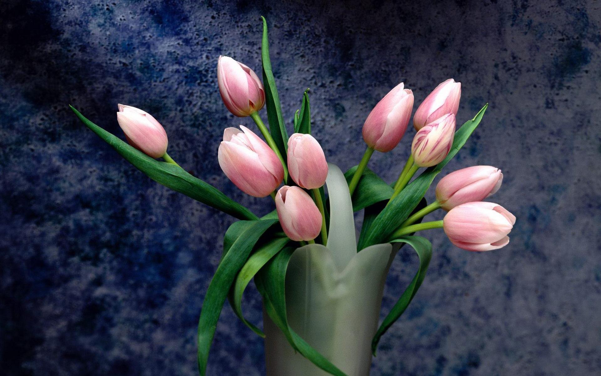 тюльпаны на розовом фоне