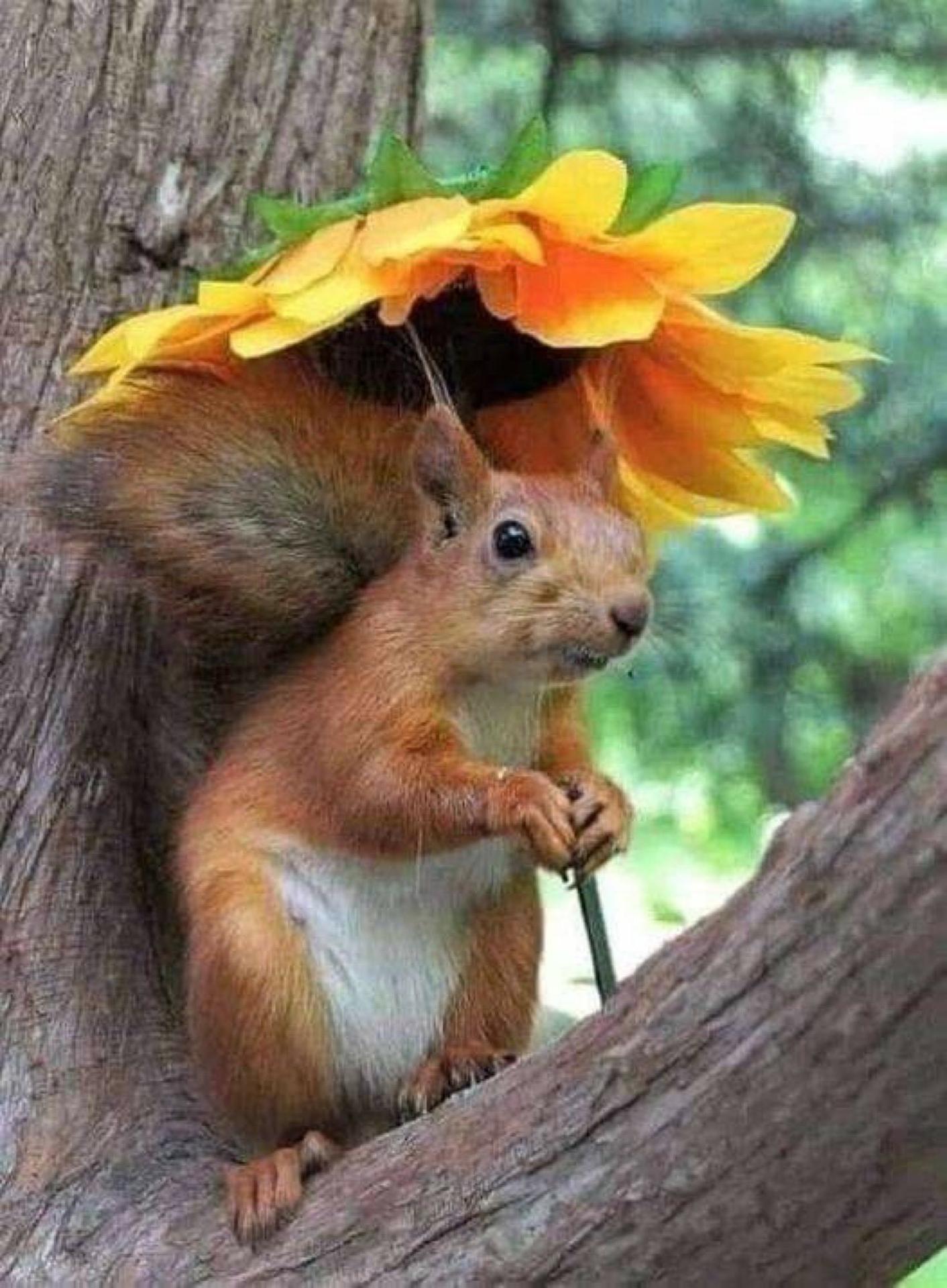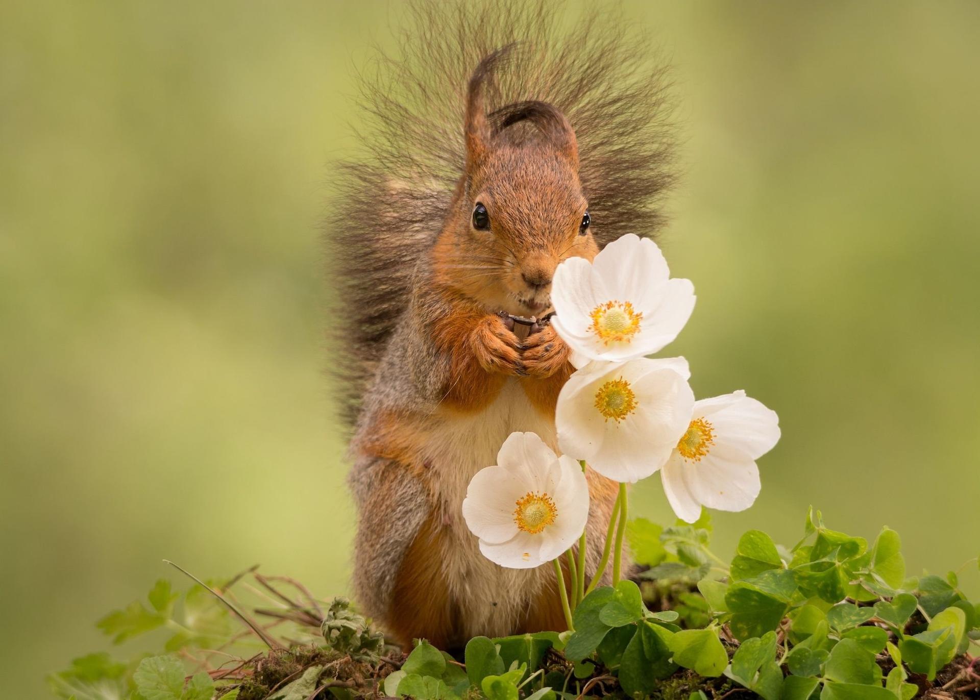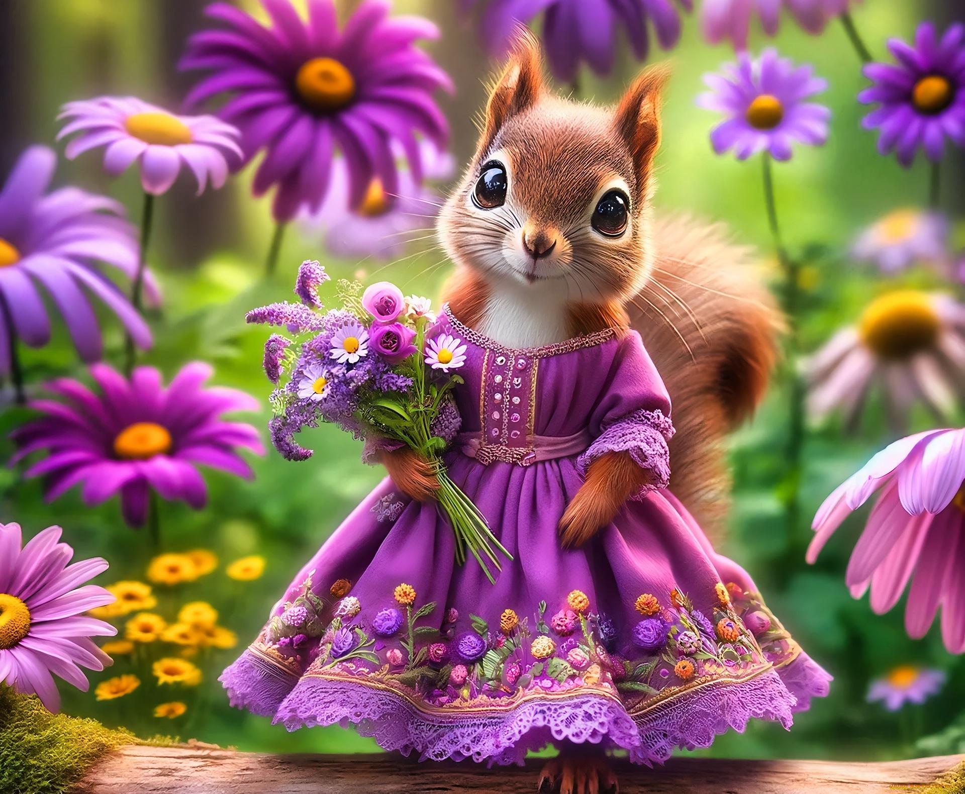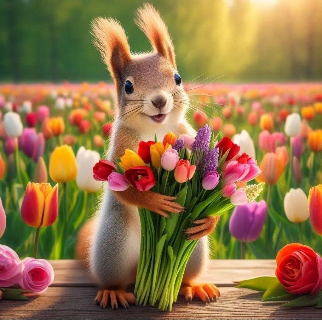 белочка с цветами