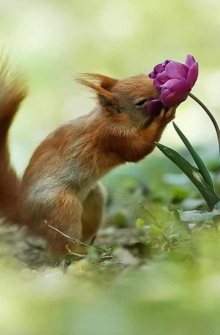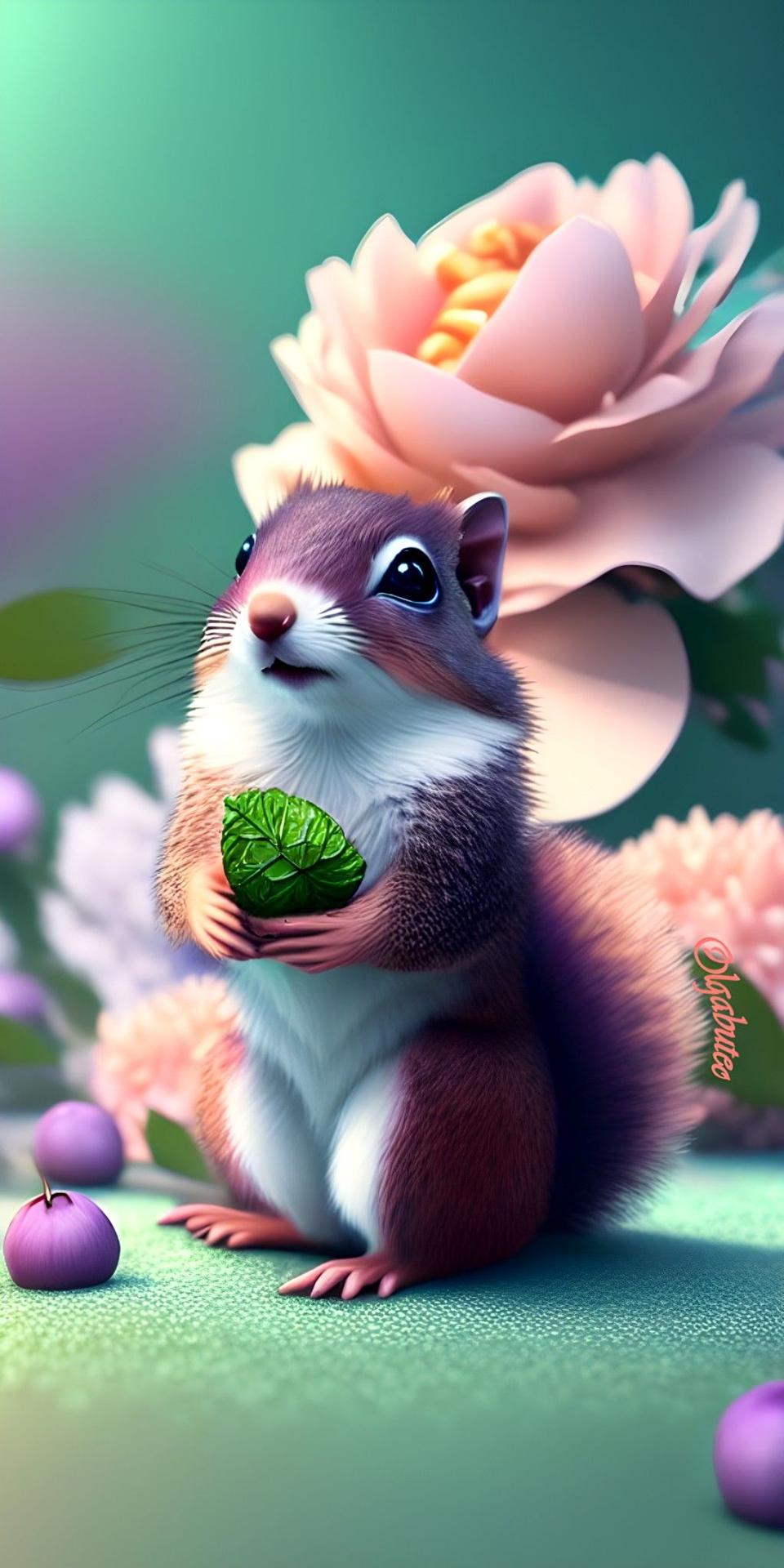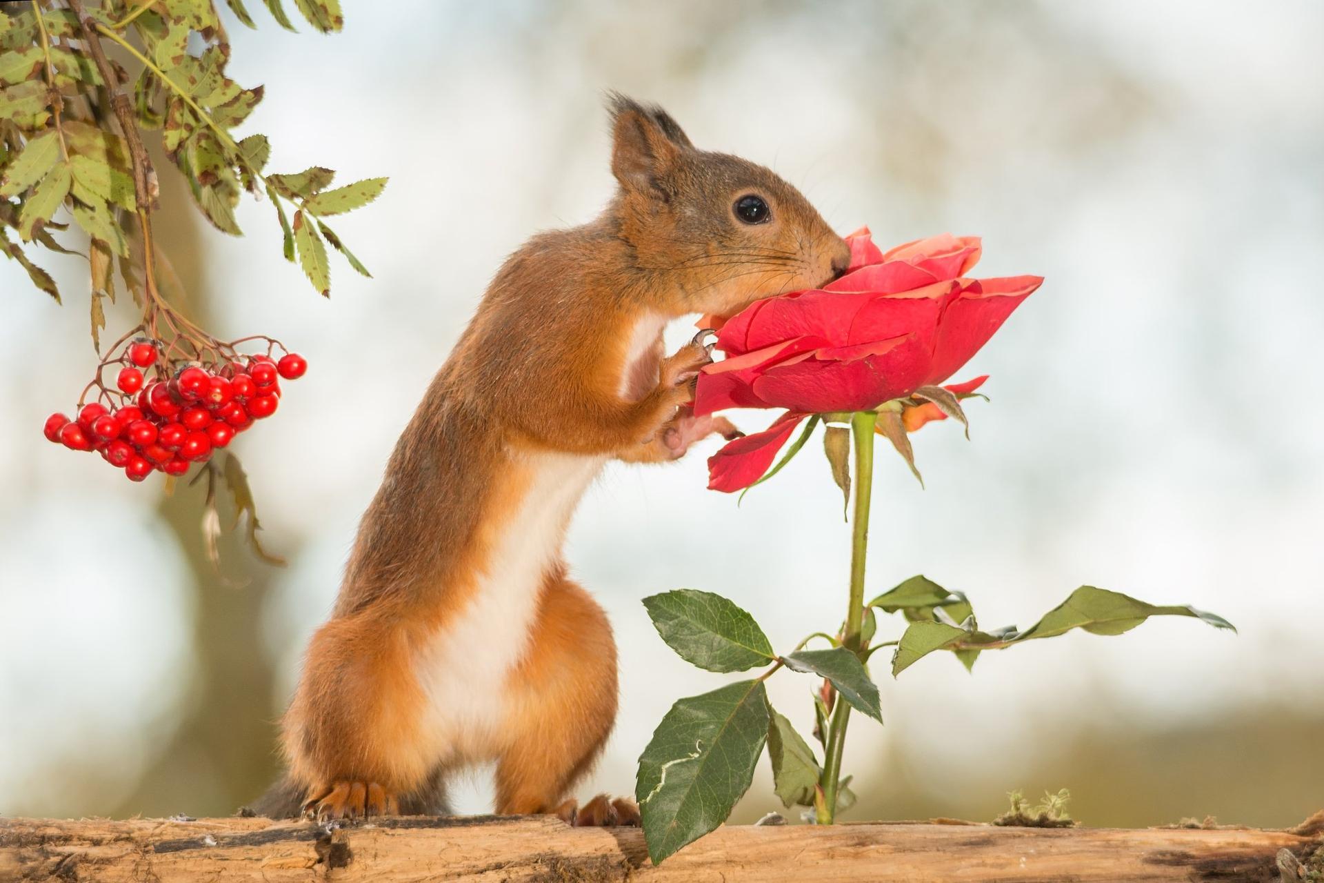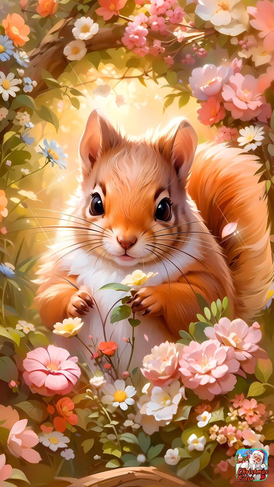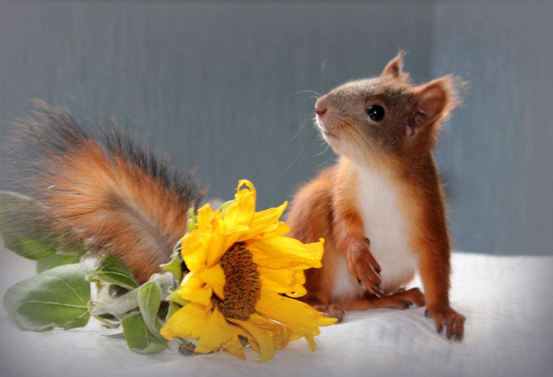 белочка с цветами