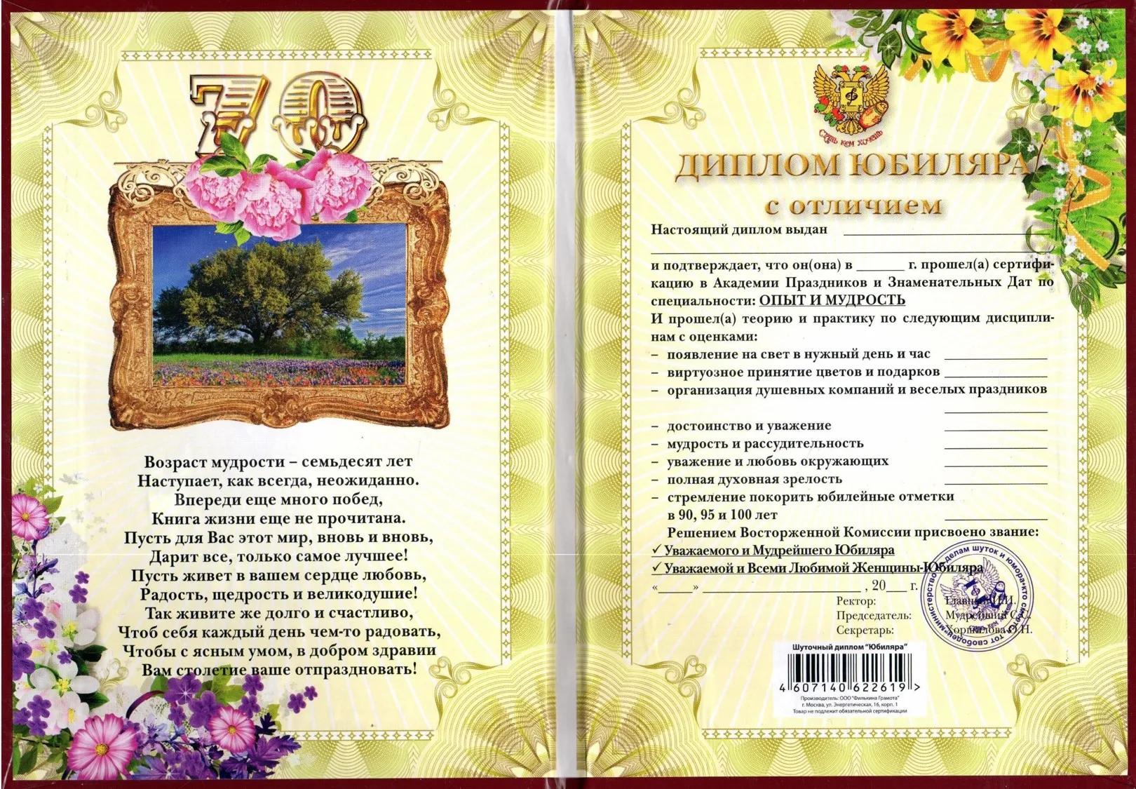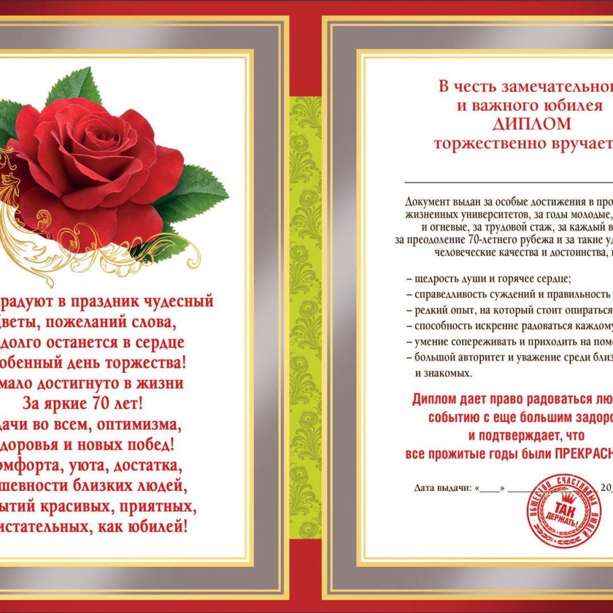 диплом на юбилей 70 лет