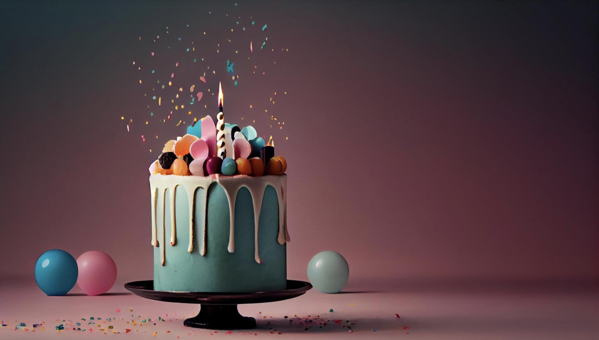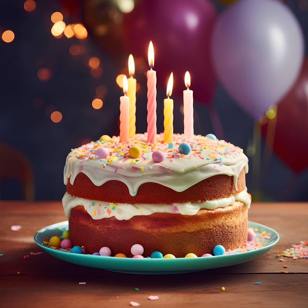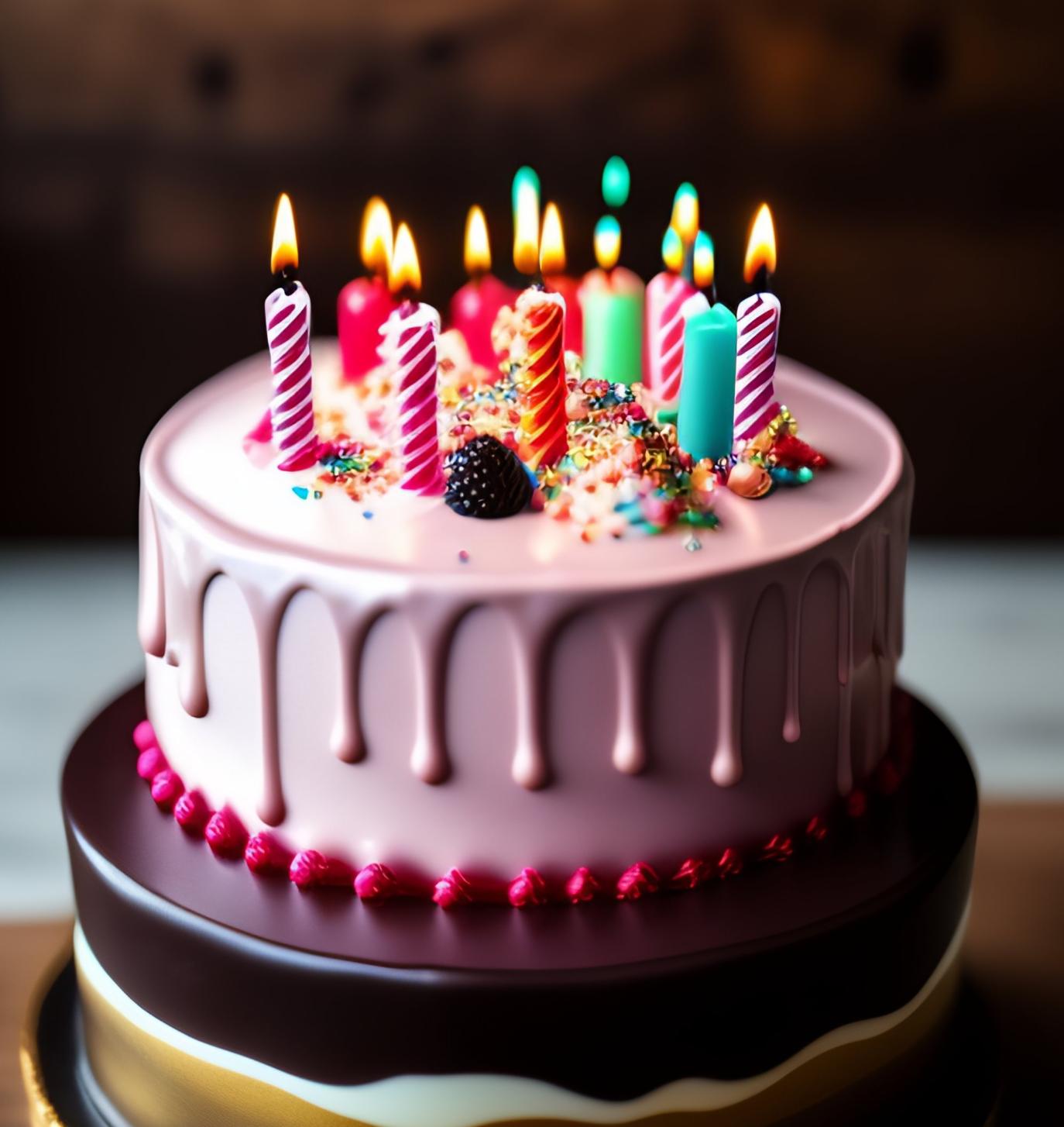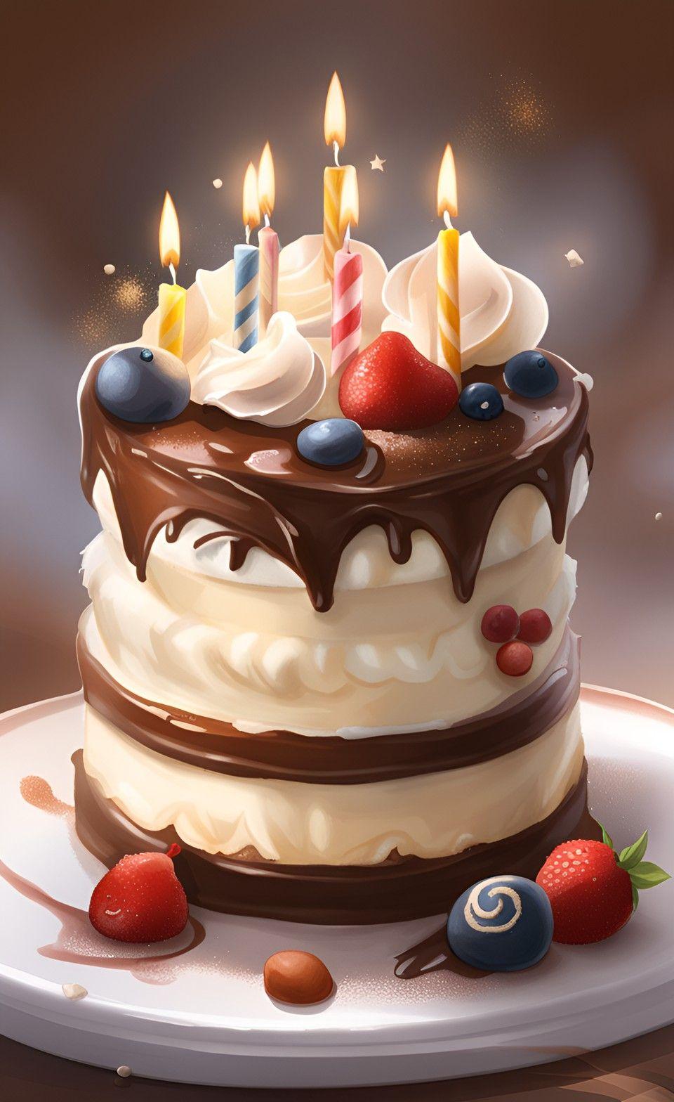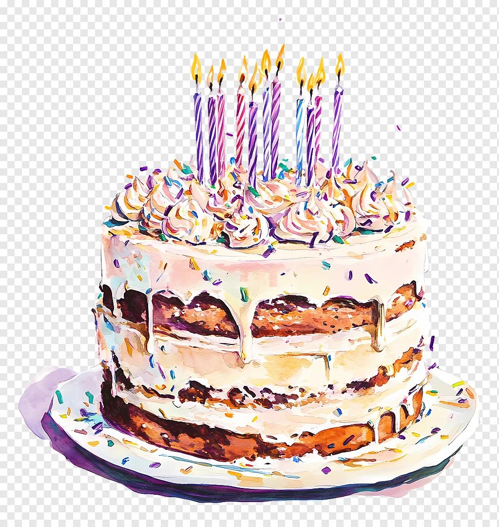 тортик о свечками акварелью на прозрачном фоне