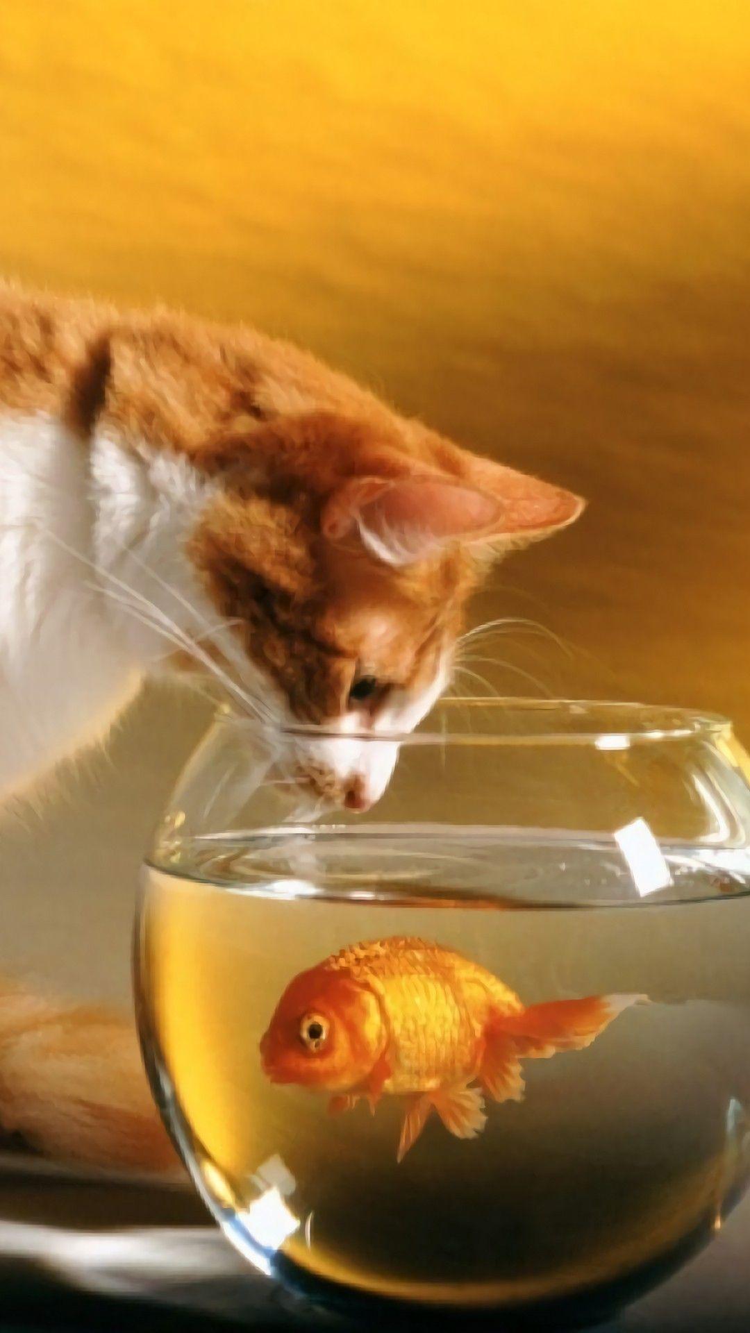 котенок целует рыбку