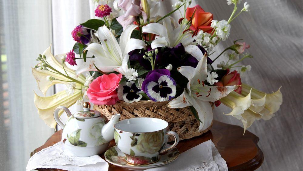 утро цветы корзина