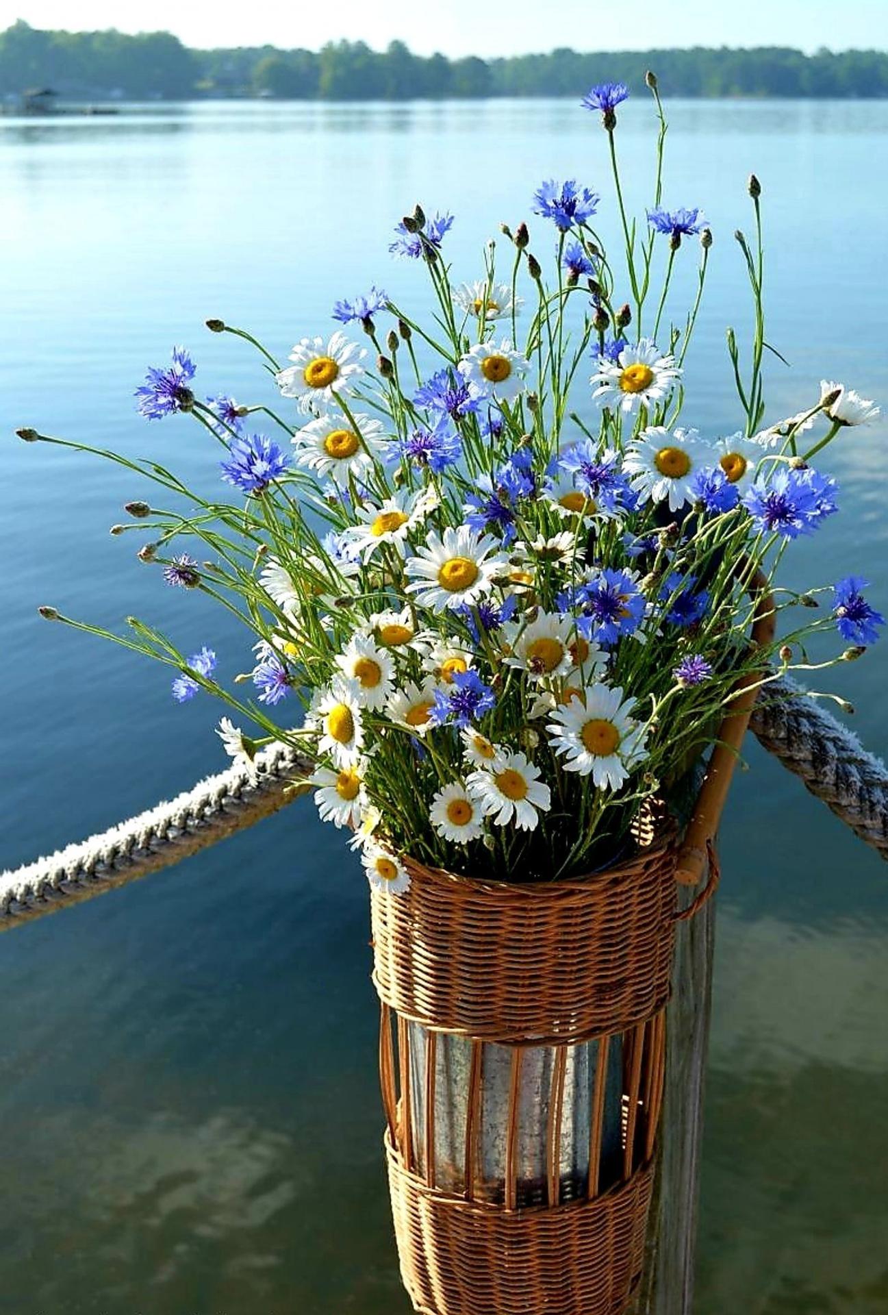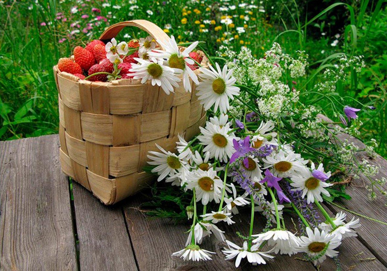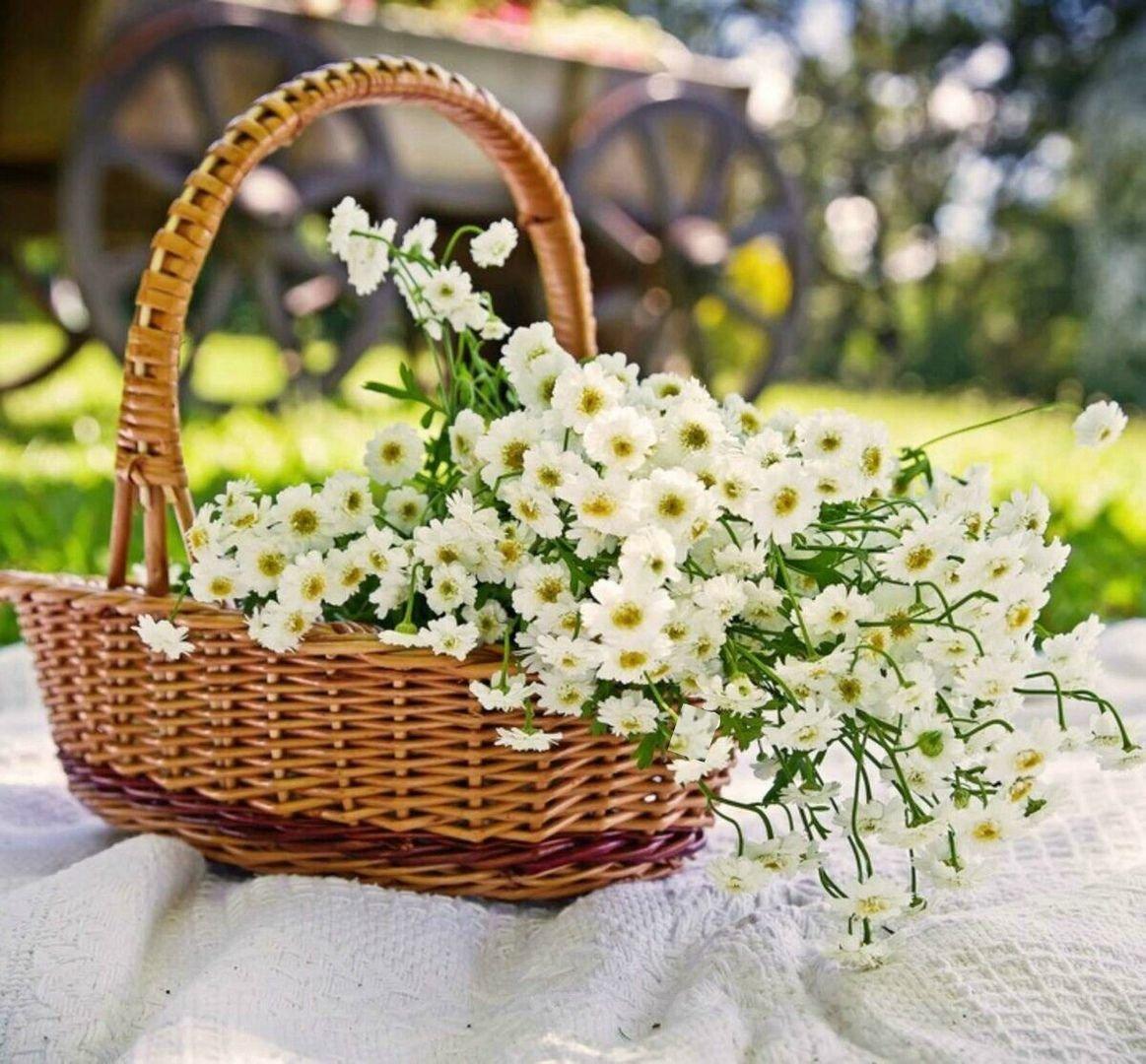 ромашки в корзине