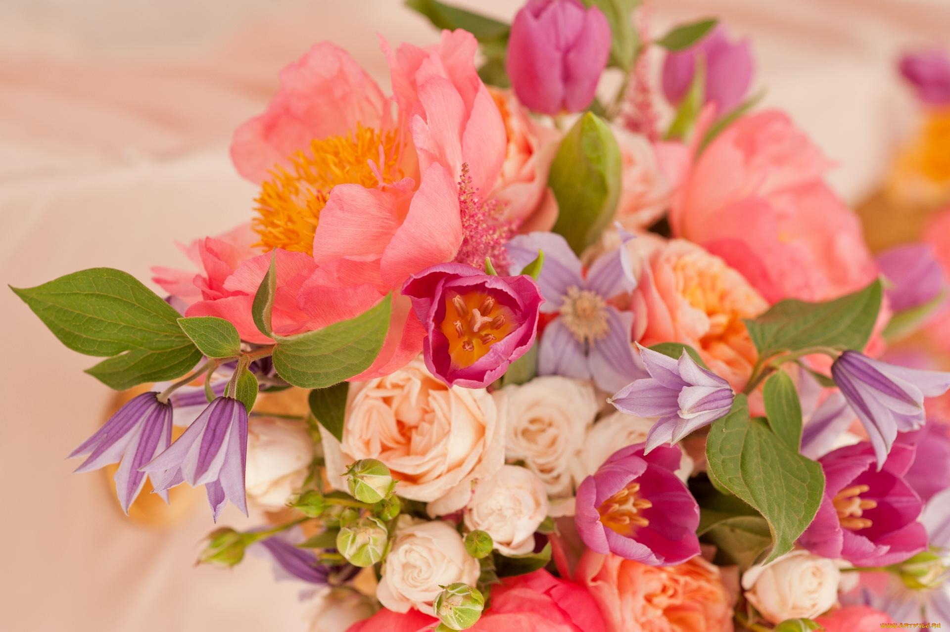 букеты с пионами и другими