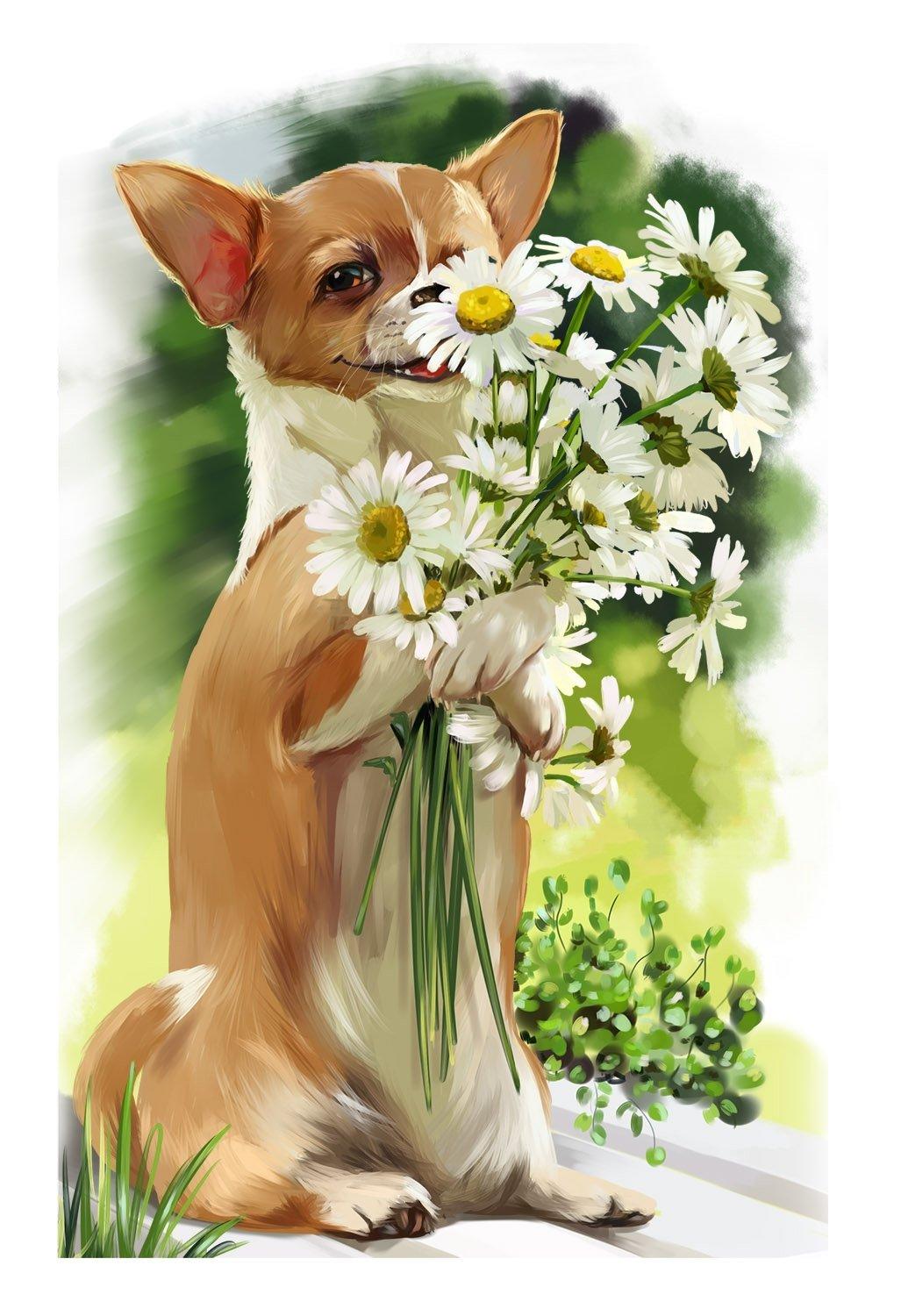 собака в ромашках