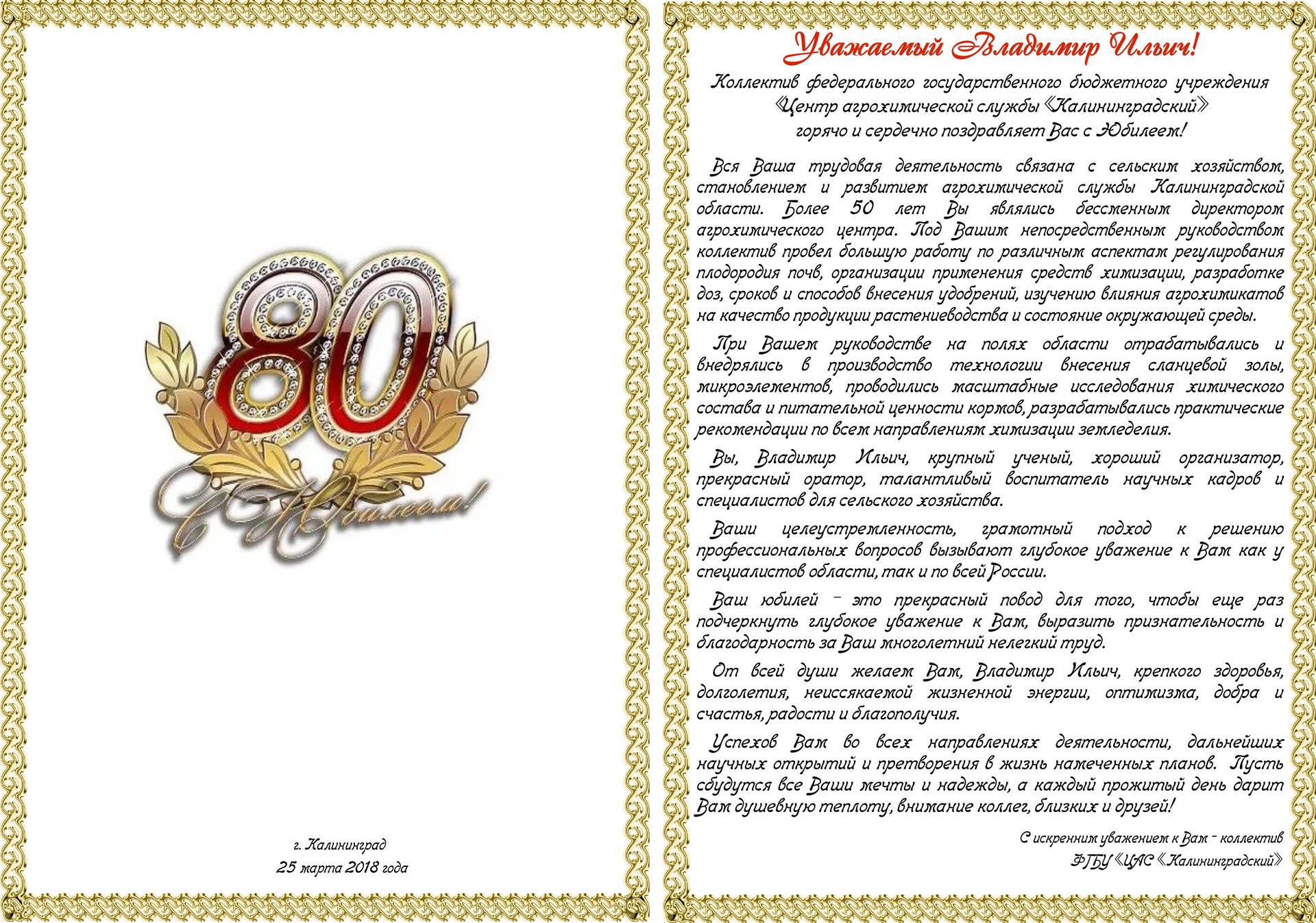 поздравление с 80 летием