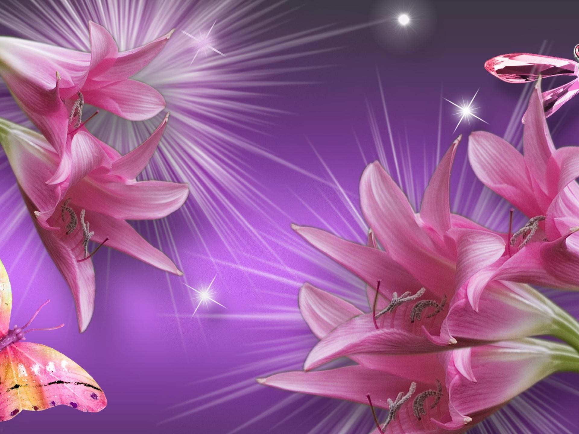 лилии и бабочка