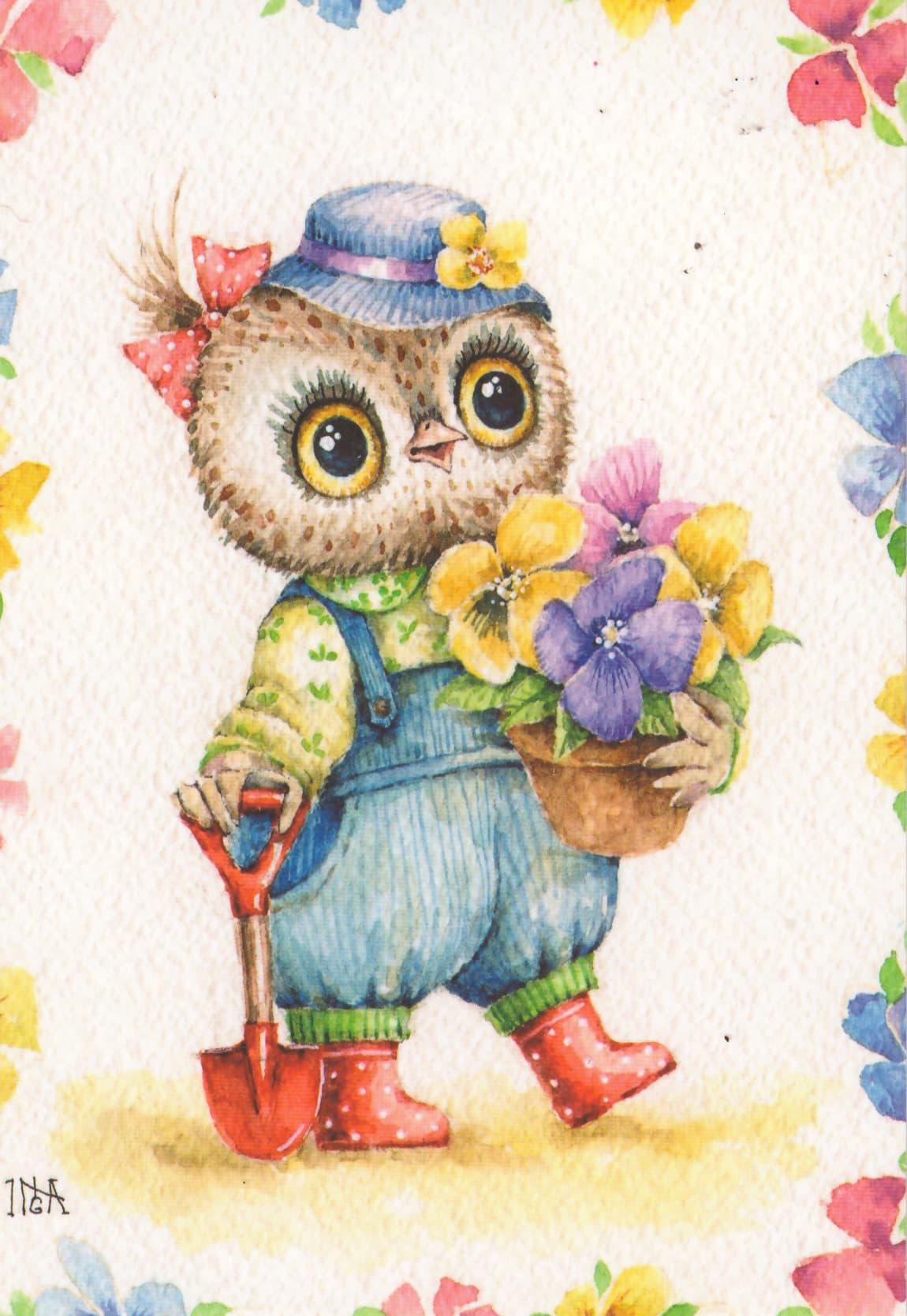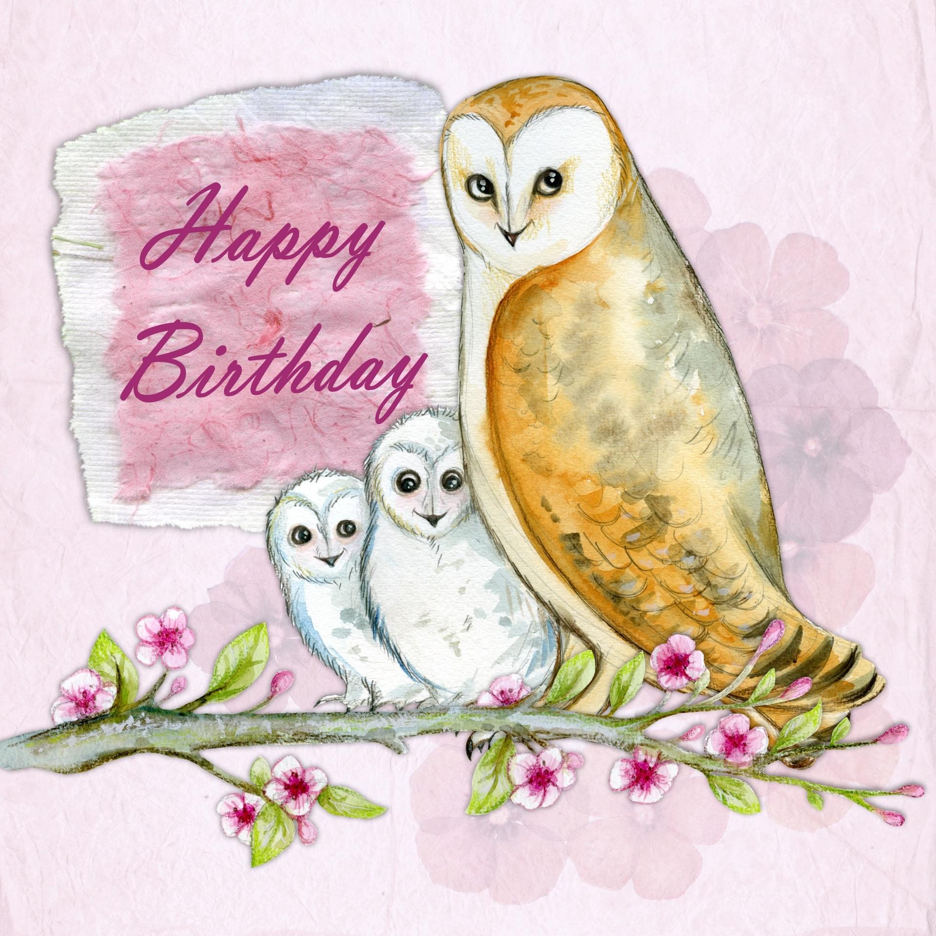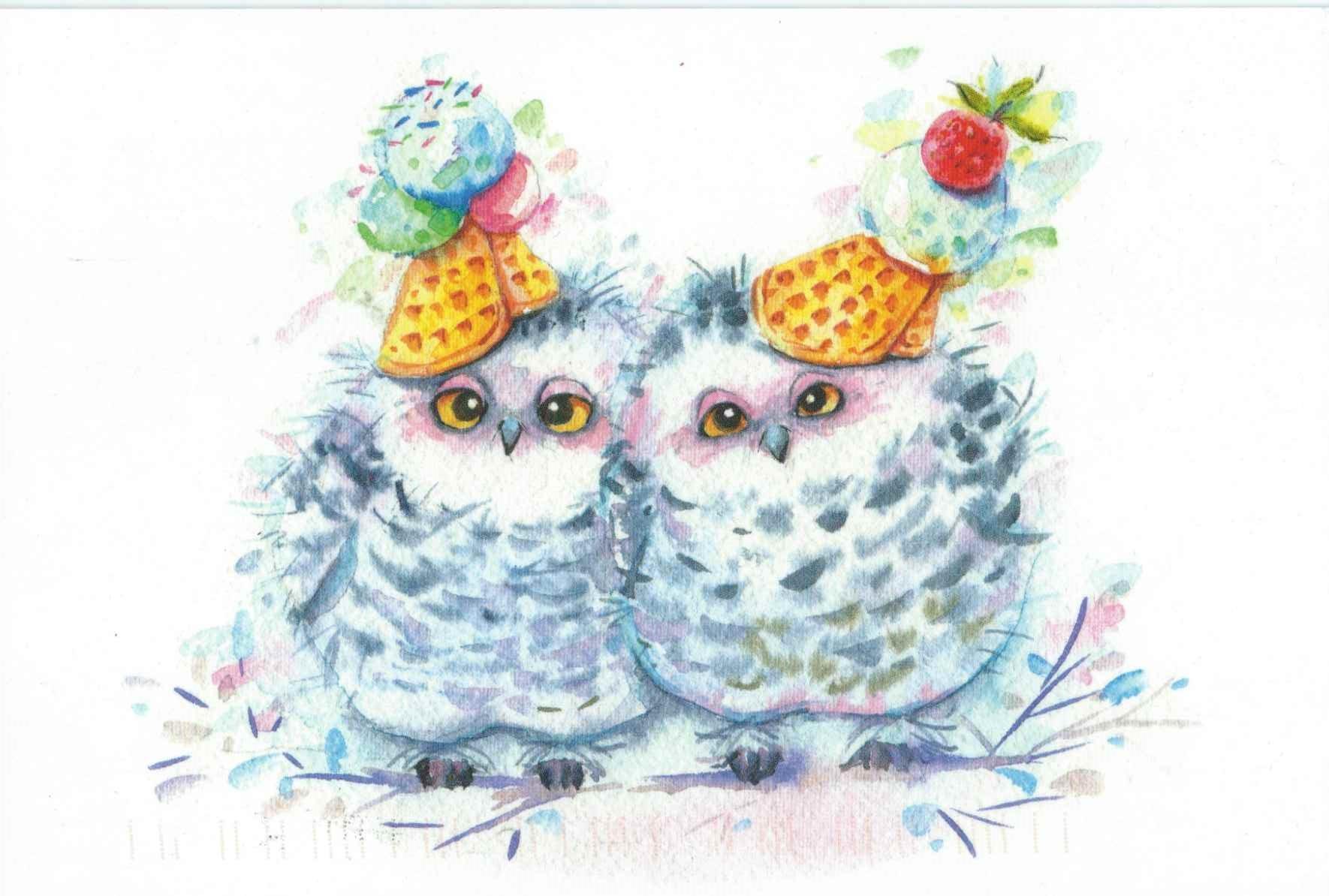 открытки с днём рождения с совушками