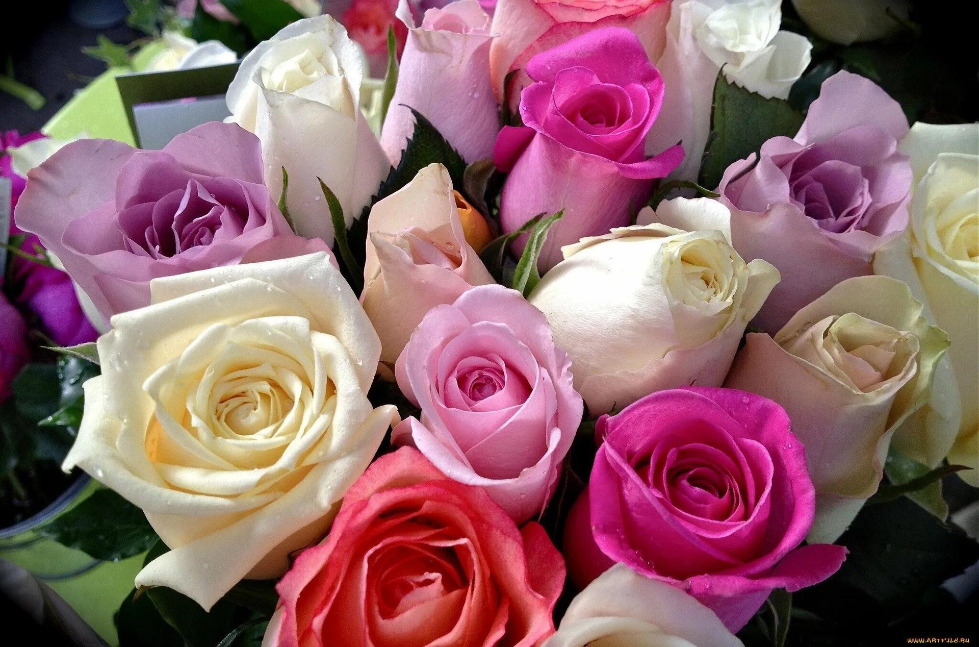 букет роз разных цветов