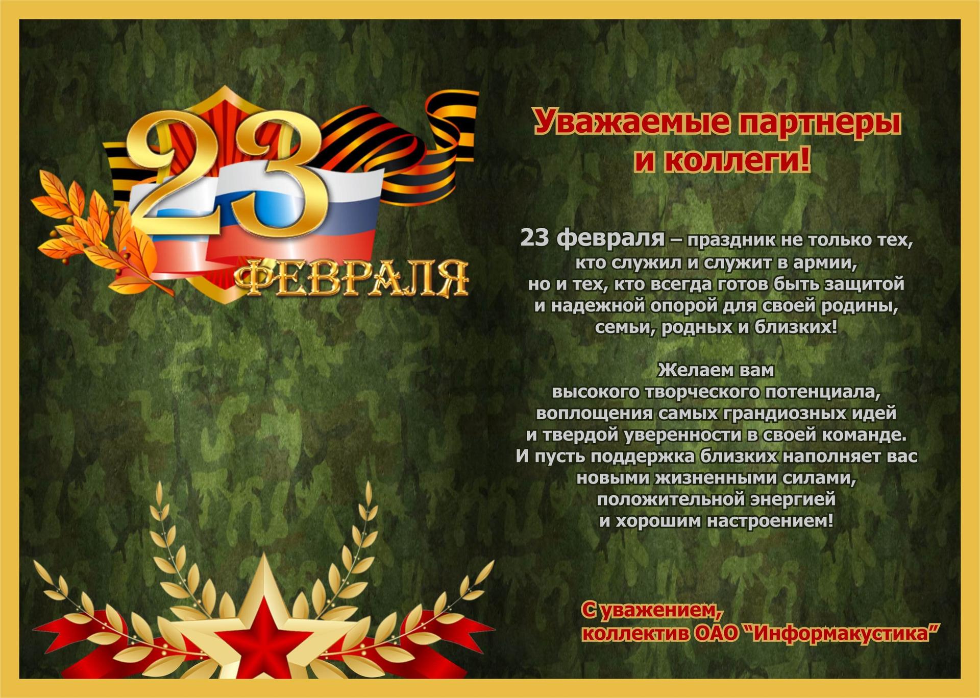 поздравление с 23 февраля партнерам