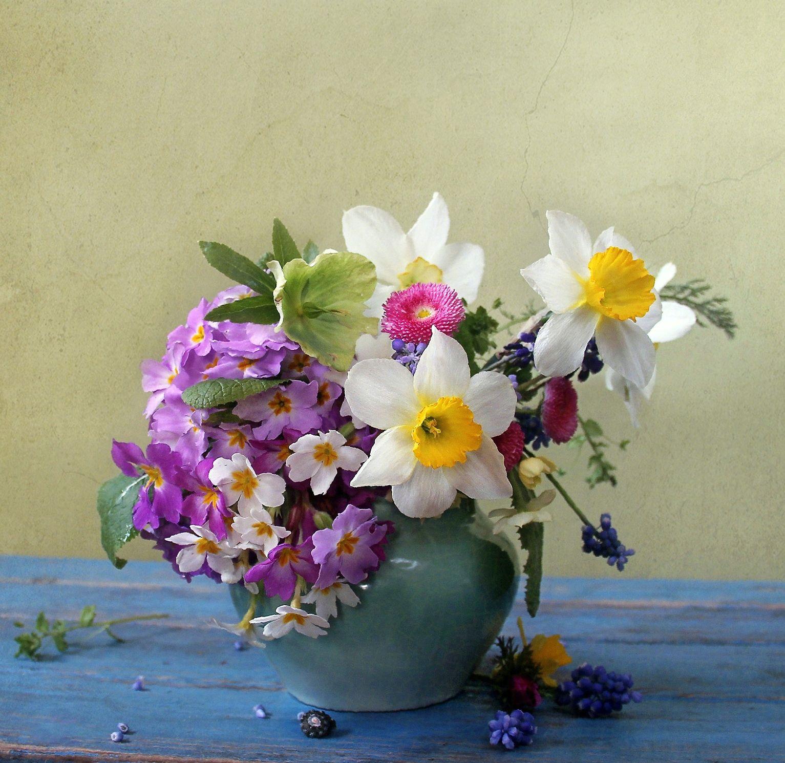 весенние цветы в вазе