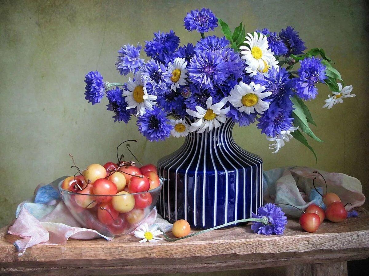 васильки в вазе