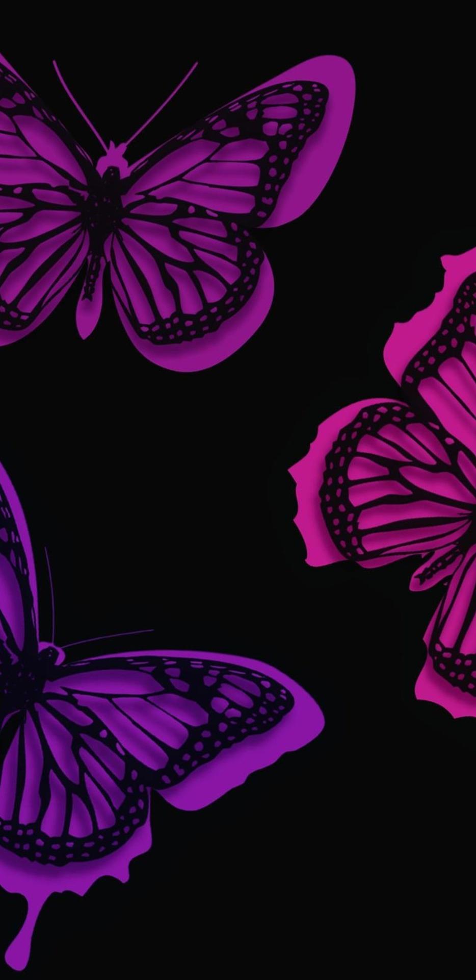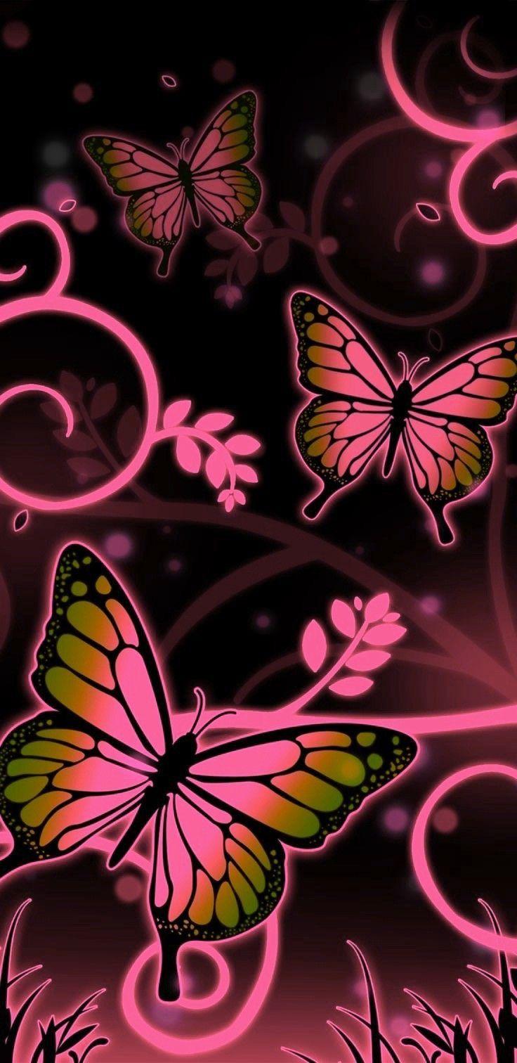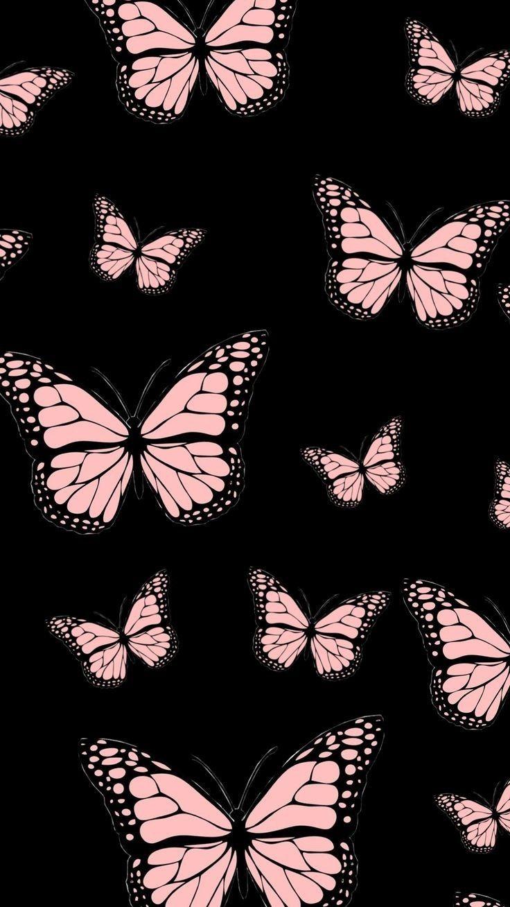розовые бабочки на черном фоне