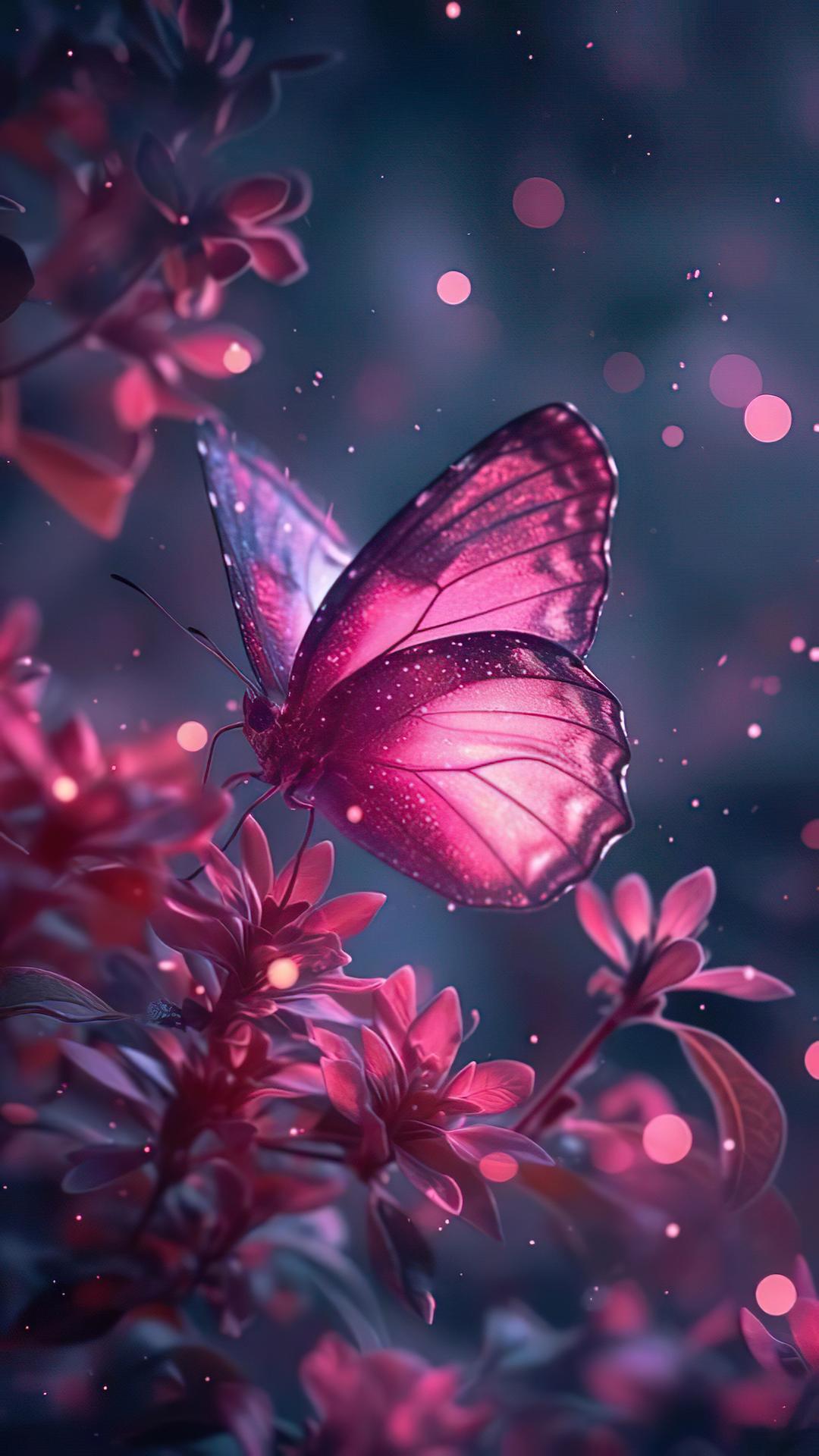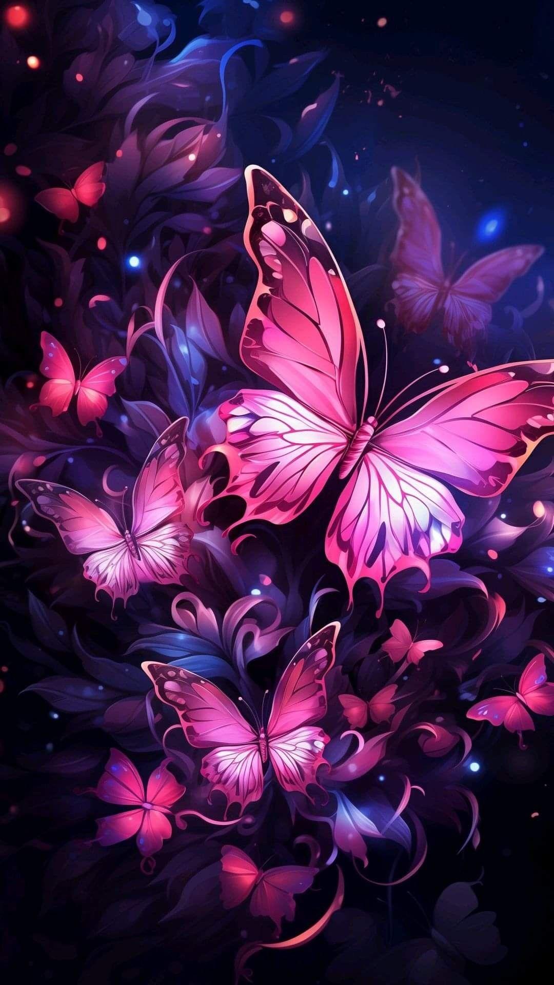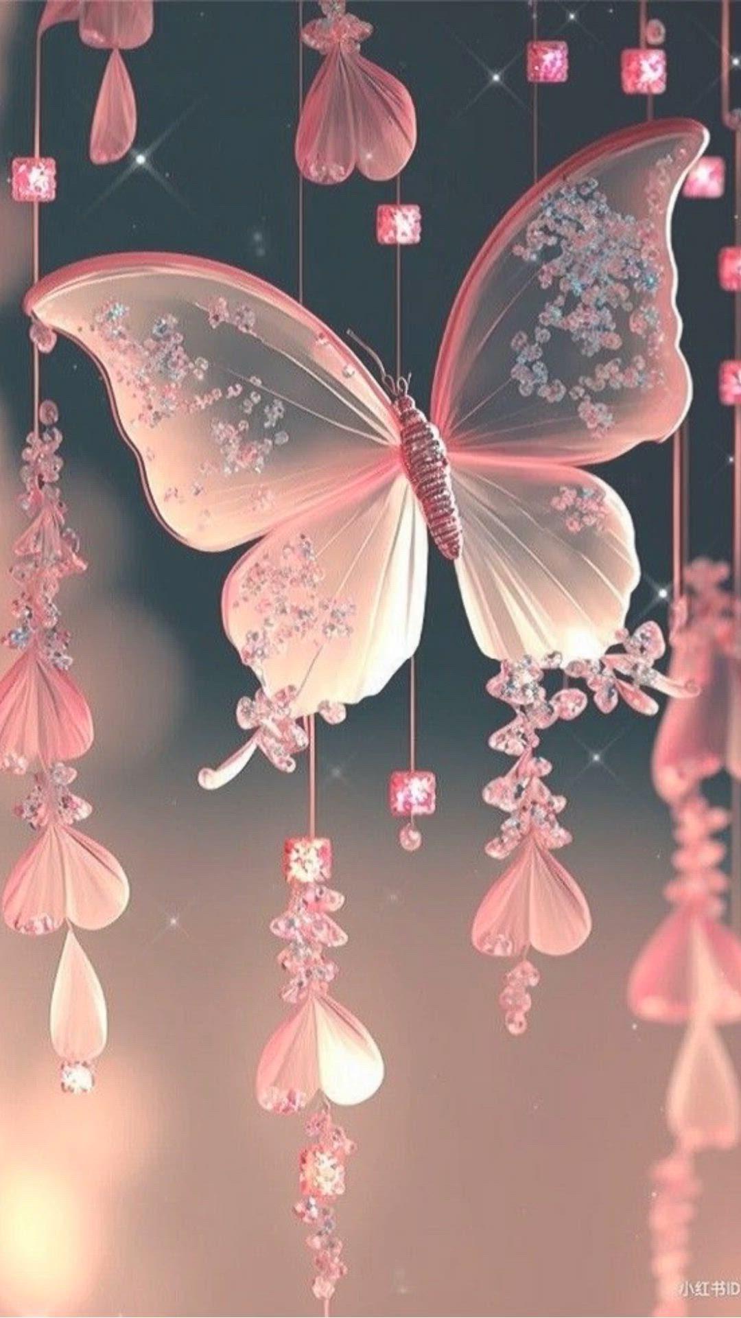 розовые сверкающие бабочки