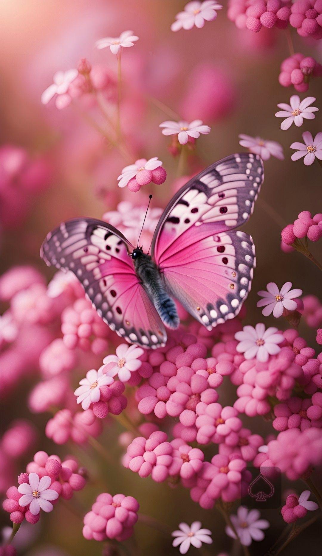 розовые обои с бабочками