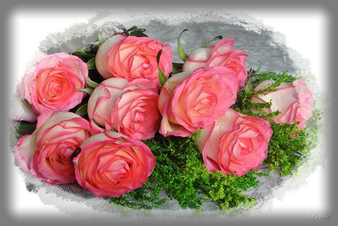 букет розовые розы