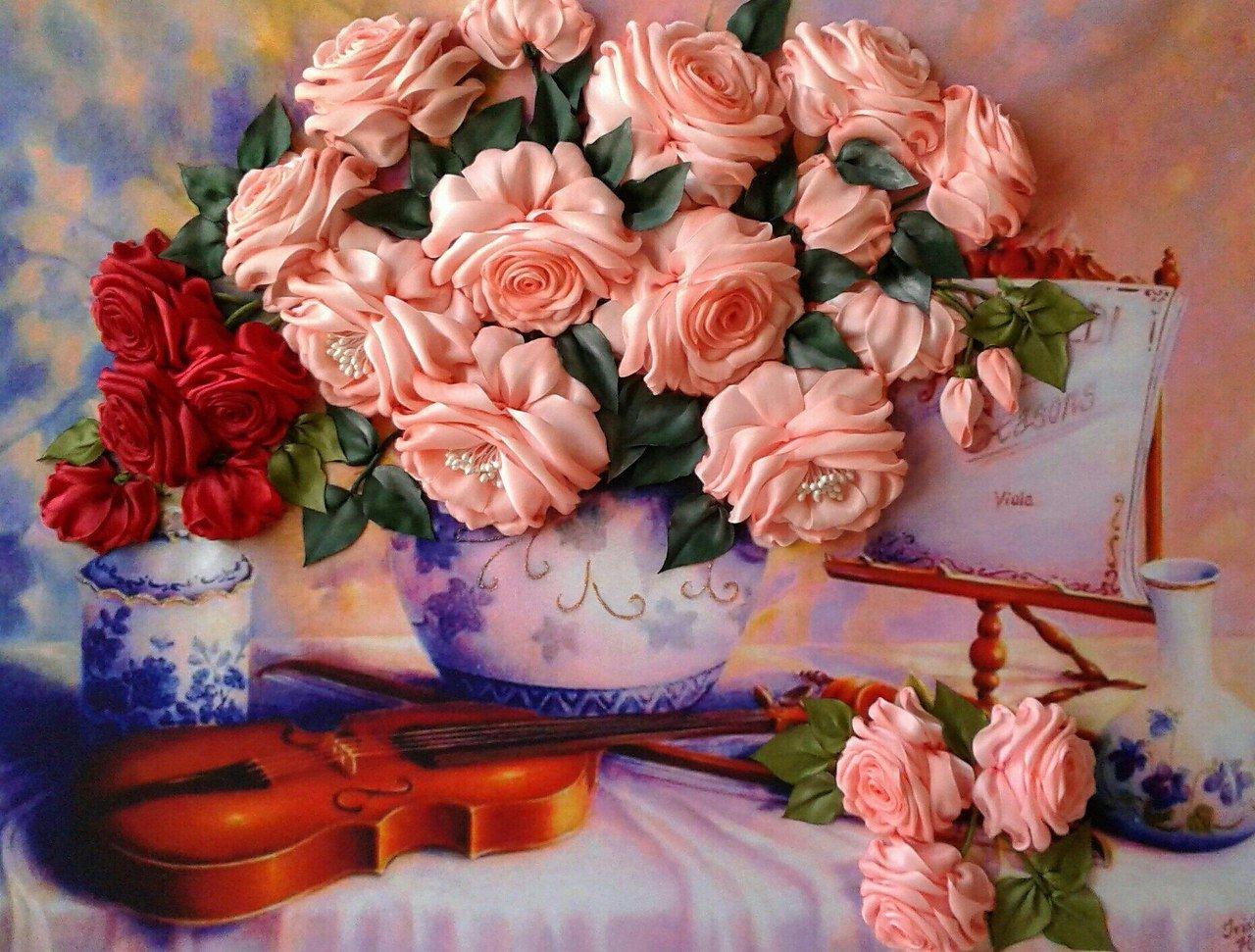 картины вышитые лентами