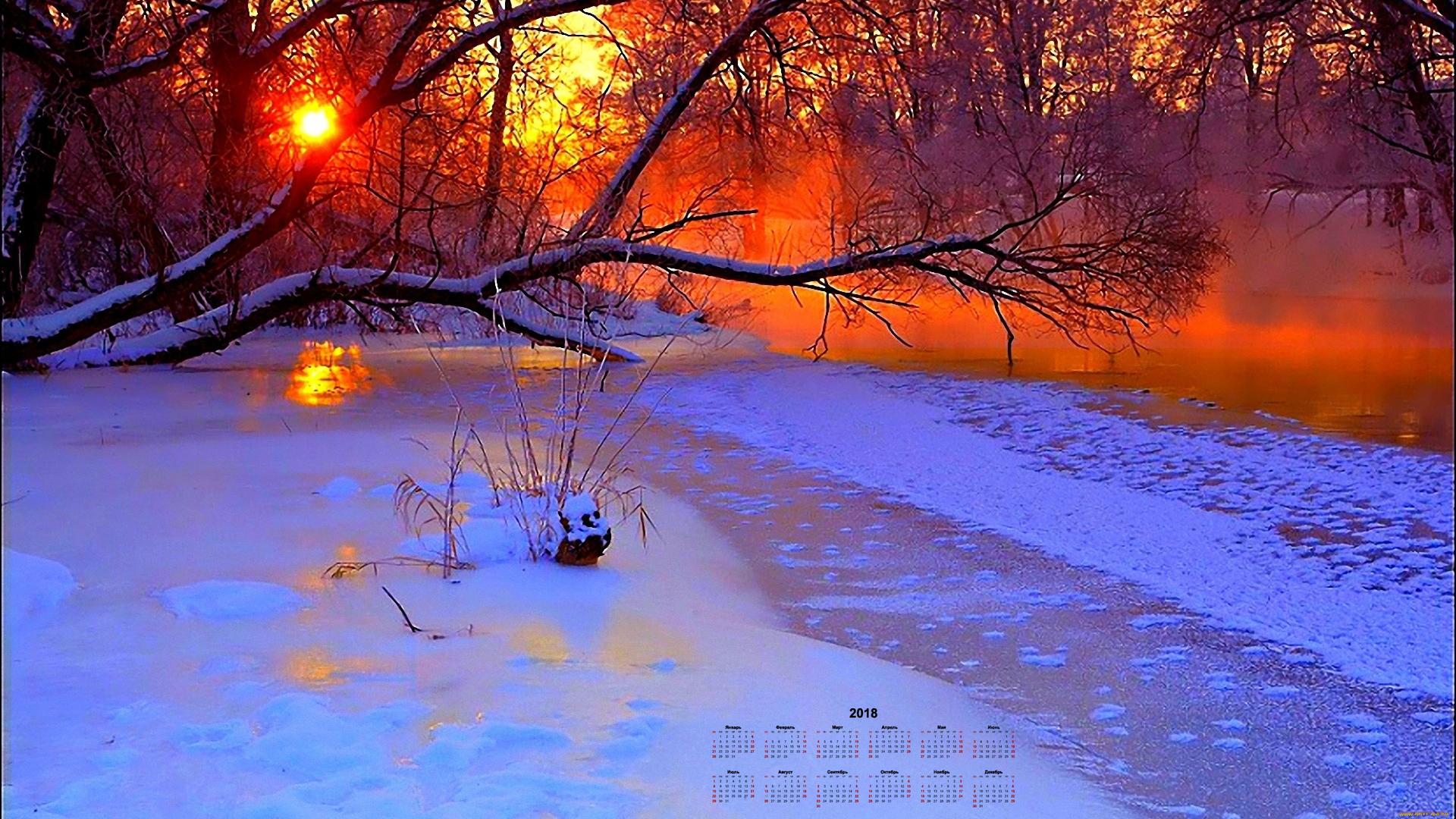 закат зима