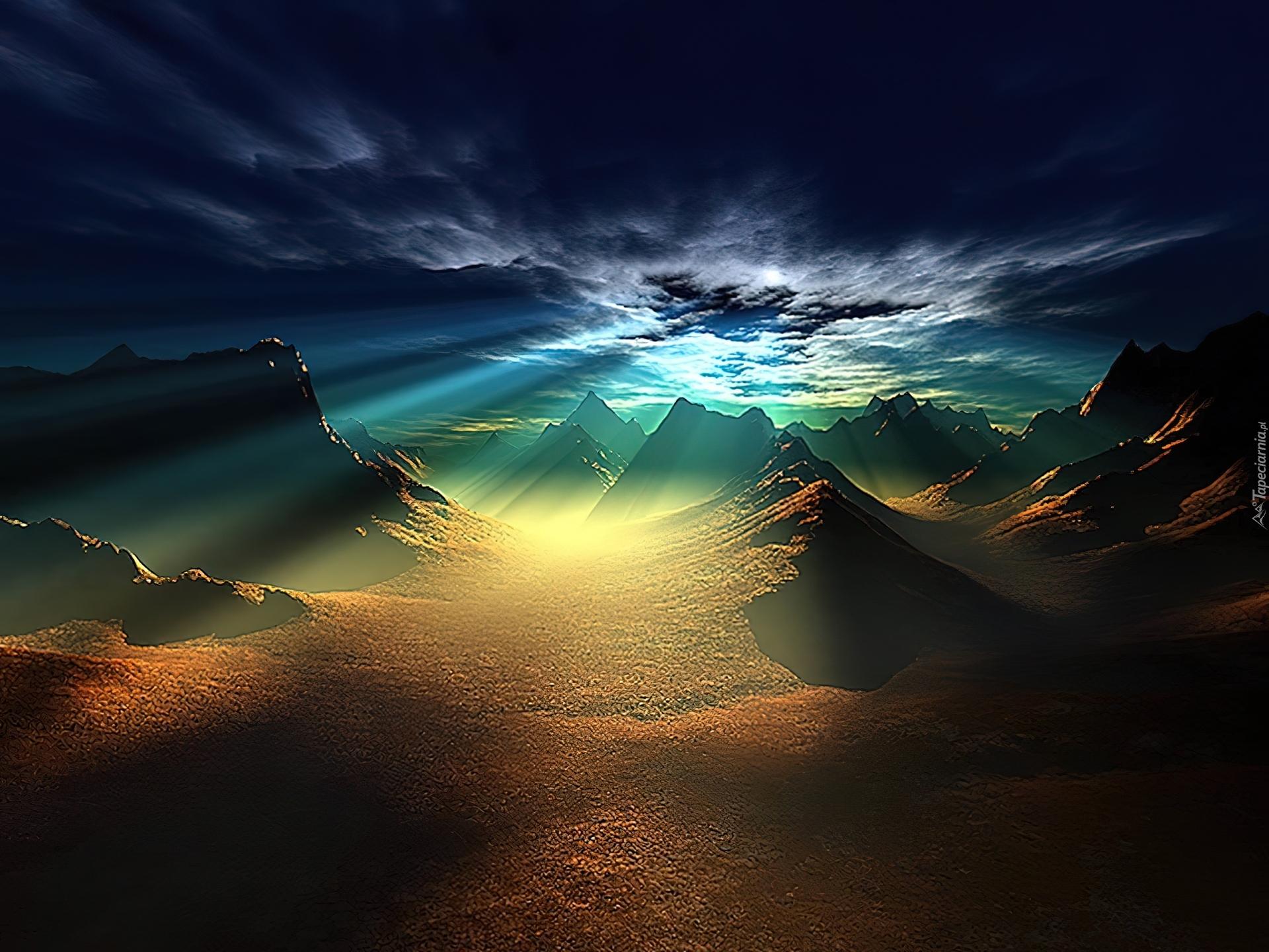 горы озеро ночь