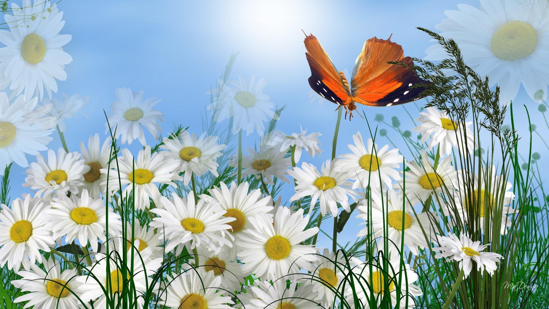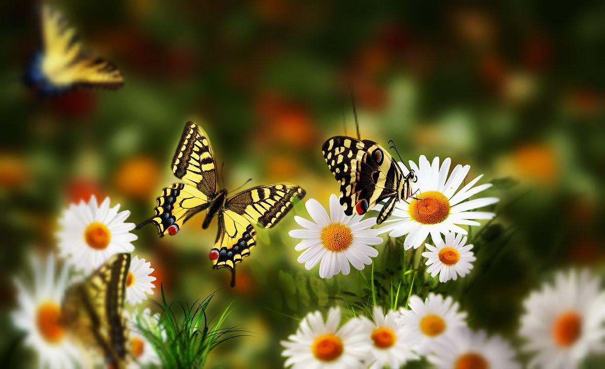 бабочка на ромашке